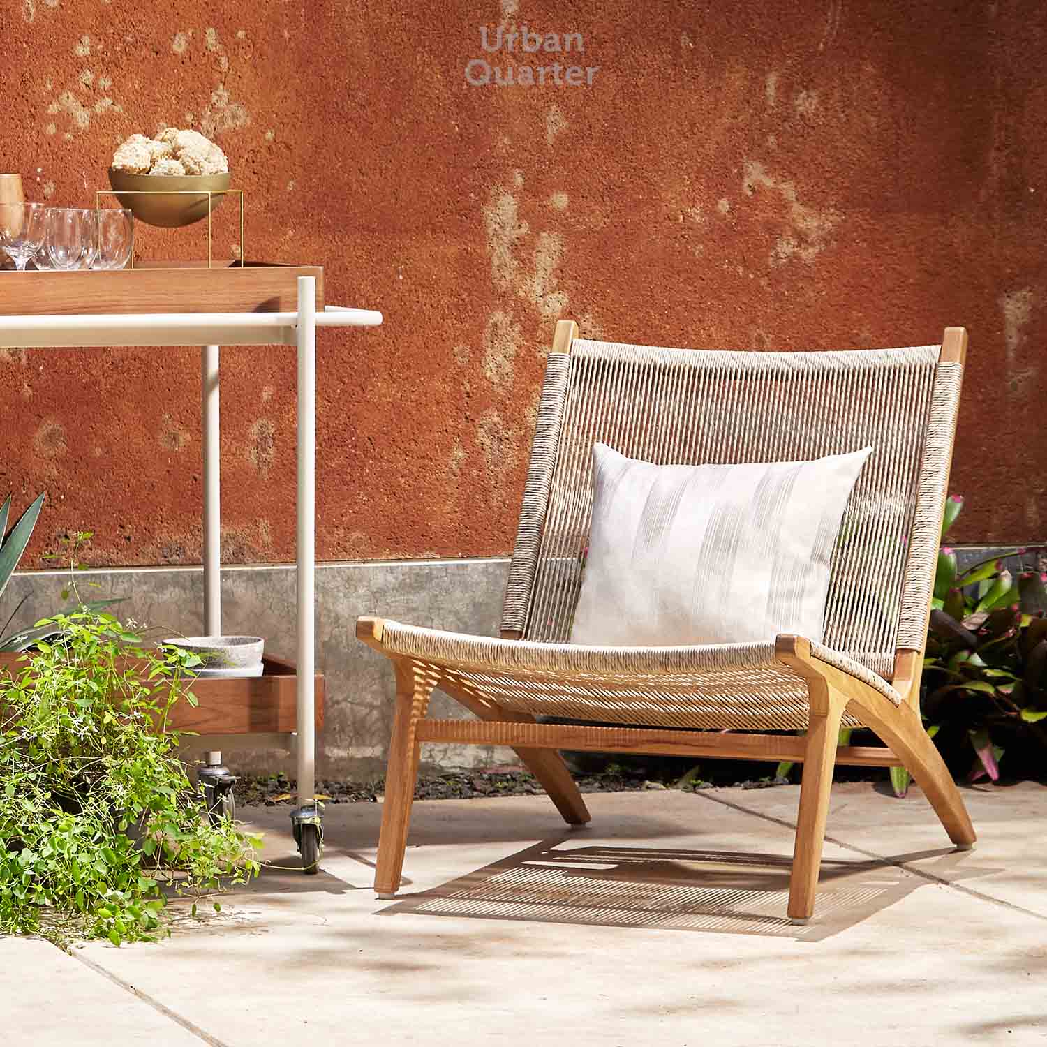 Talk about a lounge chair that is outdoor friendly while looking cool and chic indoor. Bianca brings al fresco vibes to any space with its solid teak wood frames! The chair exudes a strong silhouette and wicker to shape the back and seat.
