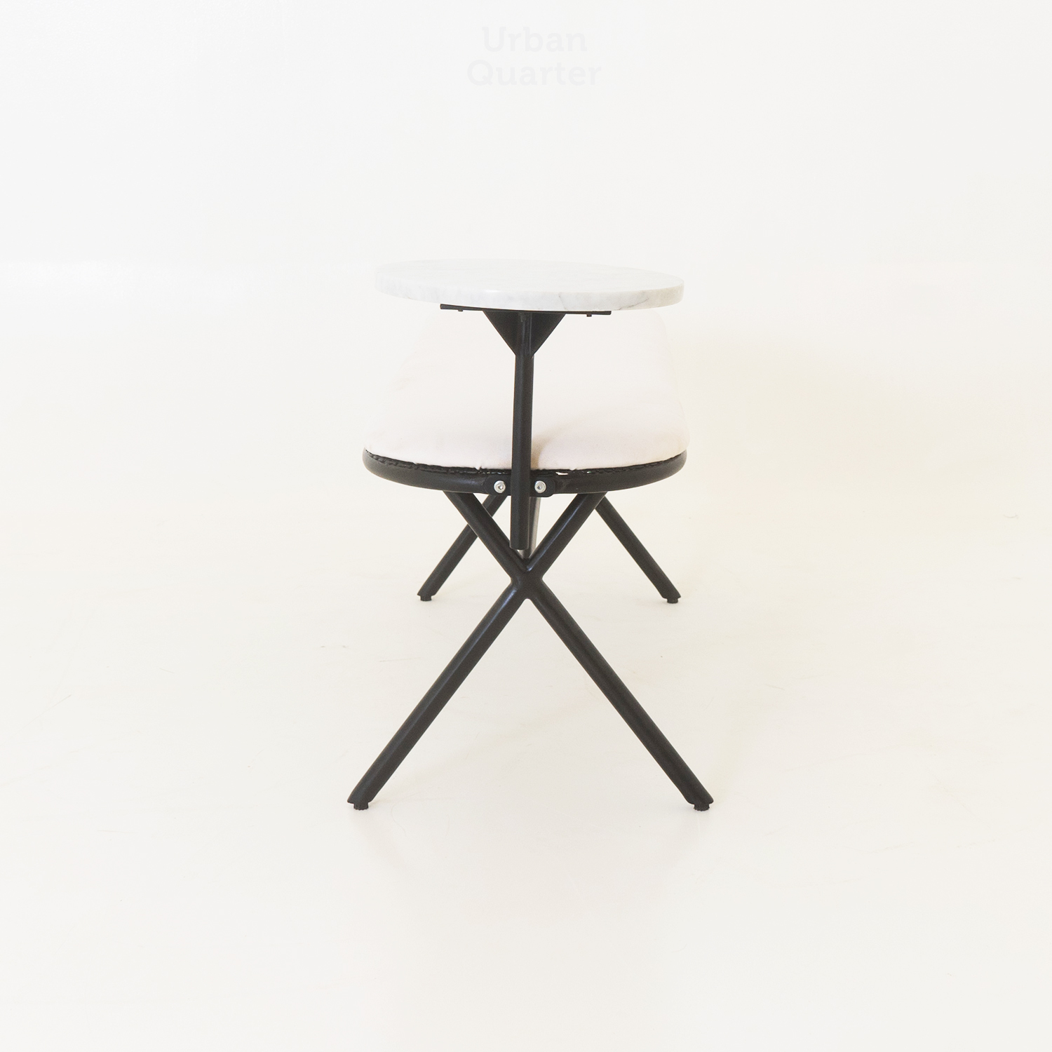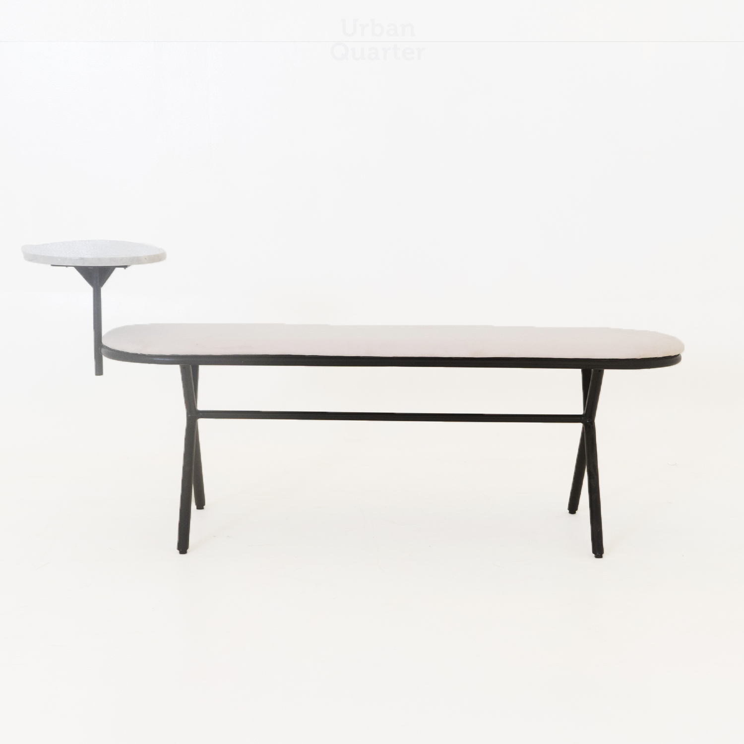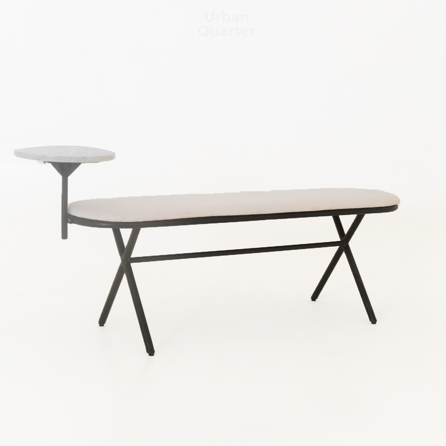 Complement your modern space with our minimalistic and sleek Bryce bench. Designed with a slim metal frame in black matte finish, this bench possesses comfortable seating for two people while having a functional marble table top on the side. Perfect for the entryway or in the living room.