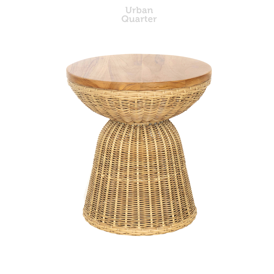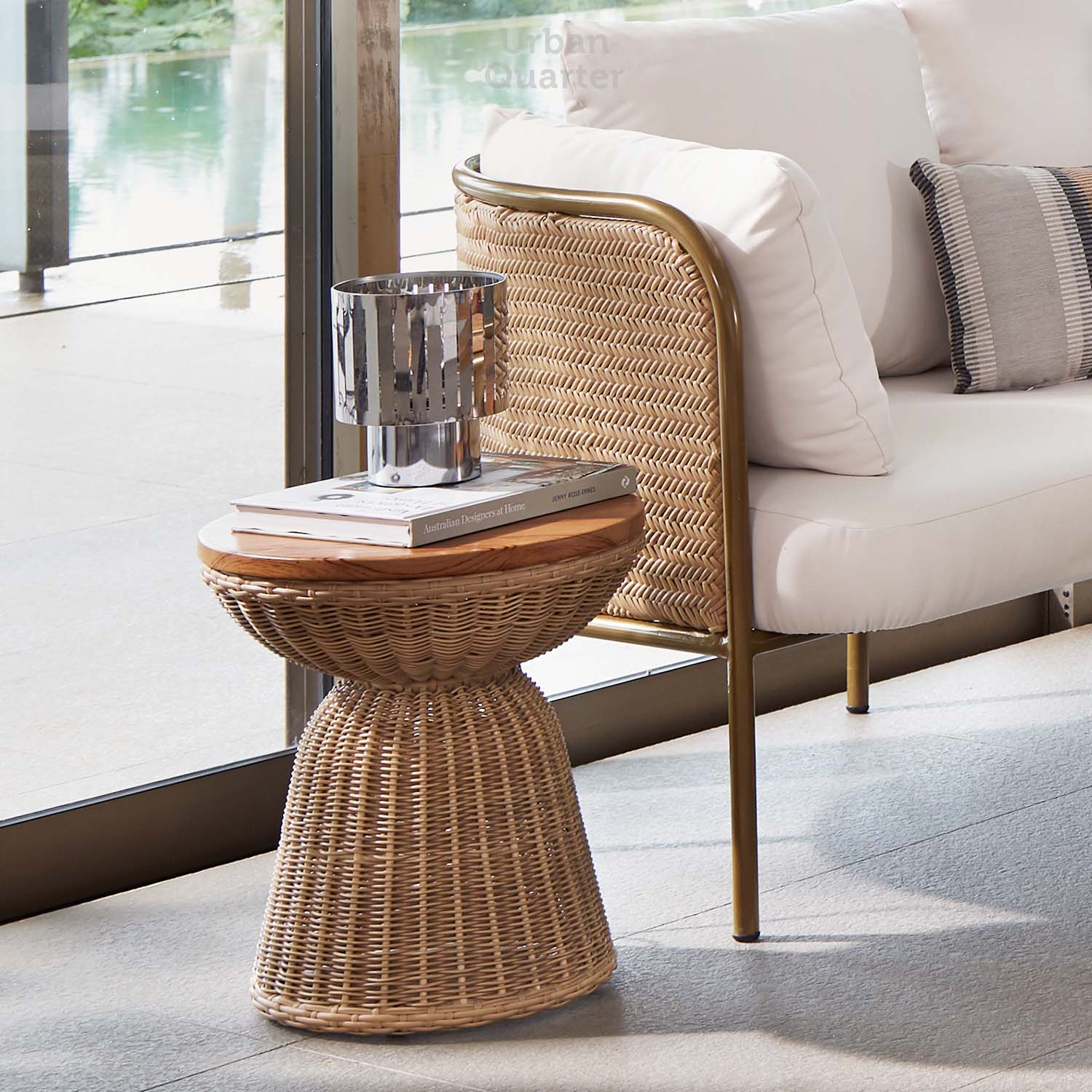 2. Solid kiln-dried teak wood frame in natural finish and synthetic wicker in honey streaky.