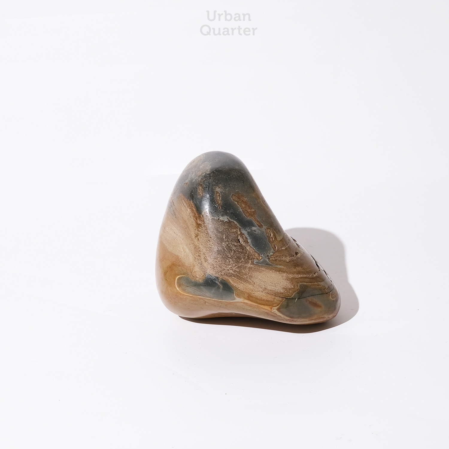 Fills the shelf elegantly with its freeform look or displayed on top of coffee table books. This pieces is made with a natural chalcedony stone.