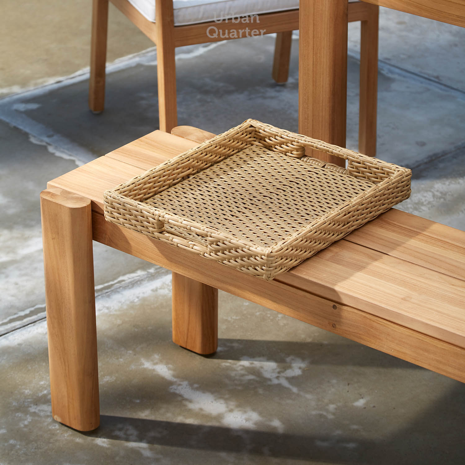 Crafted from sturdy and solid Teak wood, our Fillmore collection presents a warm, relaxed design that can be suited for indoor or outdoor dining settings. Focusing on its curved, rectangular legs, Fillmore’s organic collection features simple yet modern dining table and bench with dining chair using synthetic wicker making the chair weather resistant.