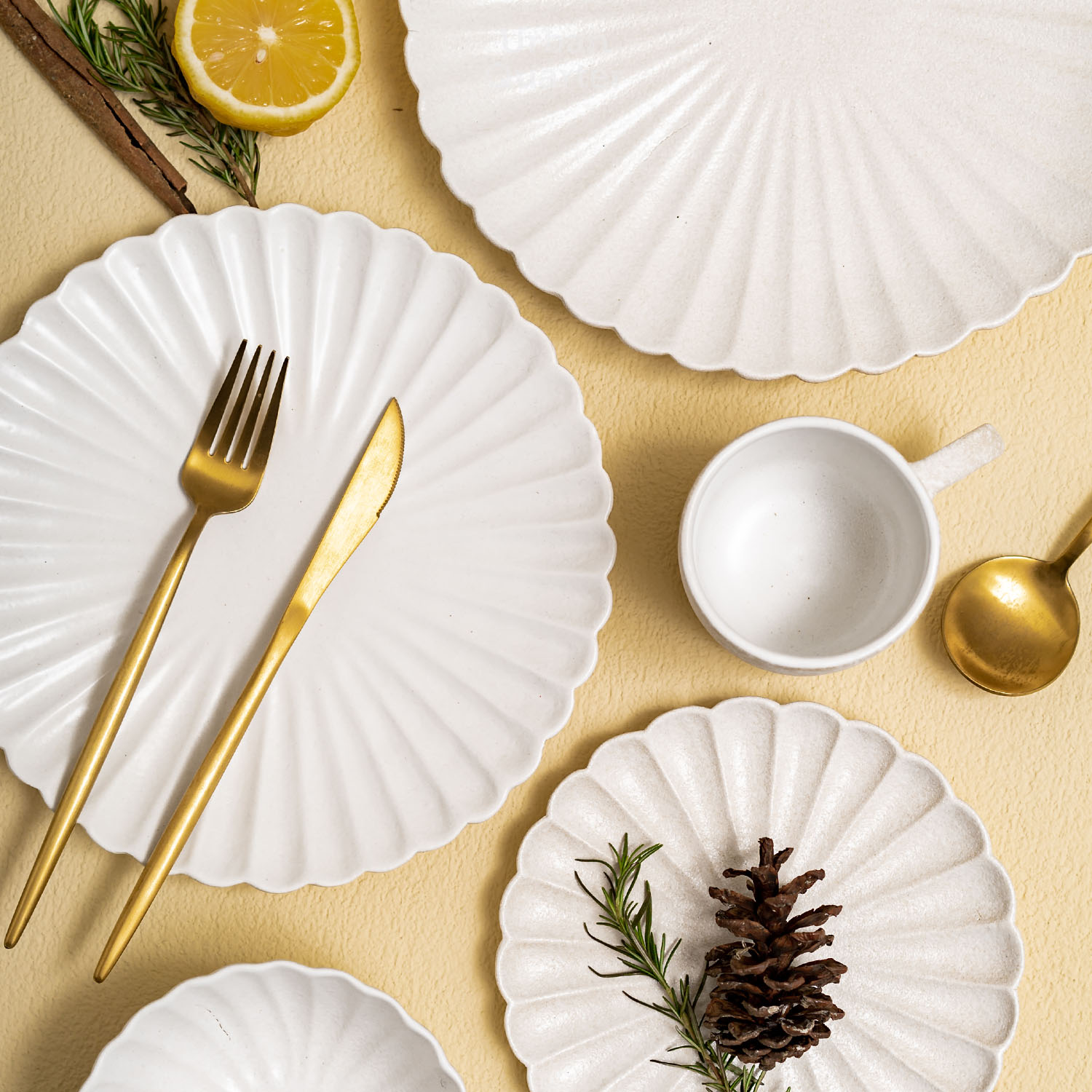A modern interpretation of floral dinnerware, inspired by Japanese aesthetics handsculpted into unique stoneware pieces. Flora can double as a modern artpiece while providing a multifunctional use in the dining table: from soup bowl, dessert plate to dinner plate. This collection is perfect for casual dining or for when you host a dinner party.