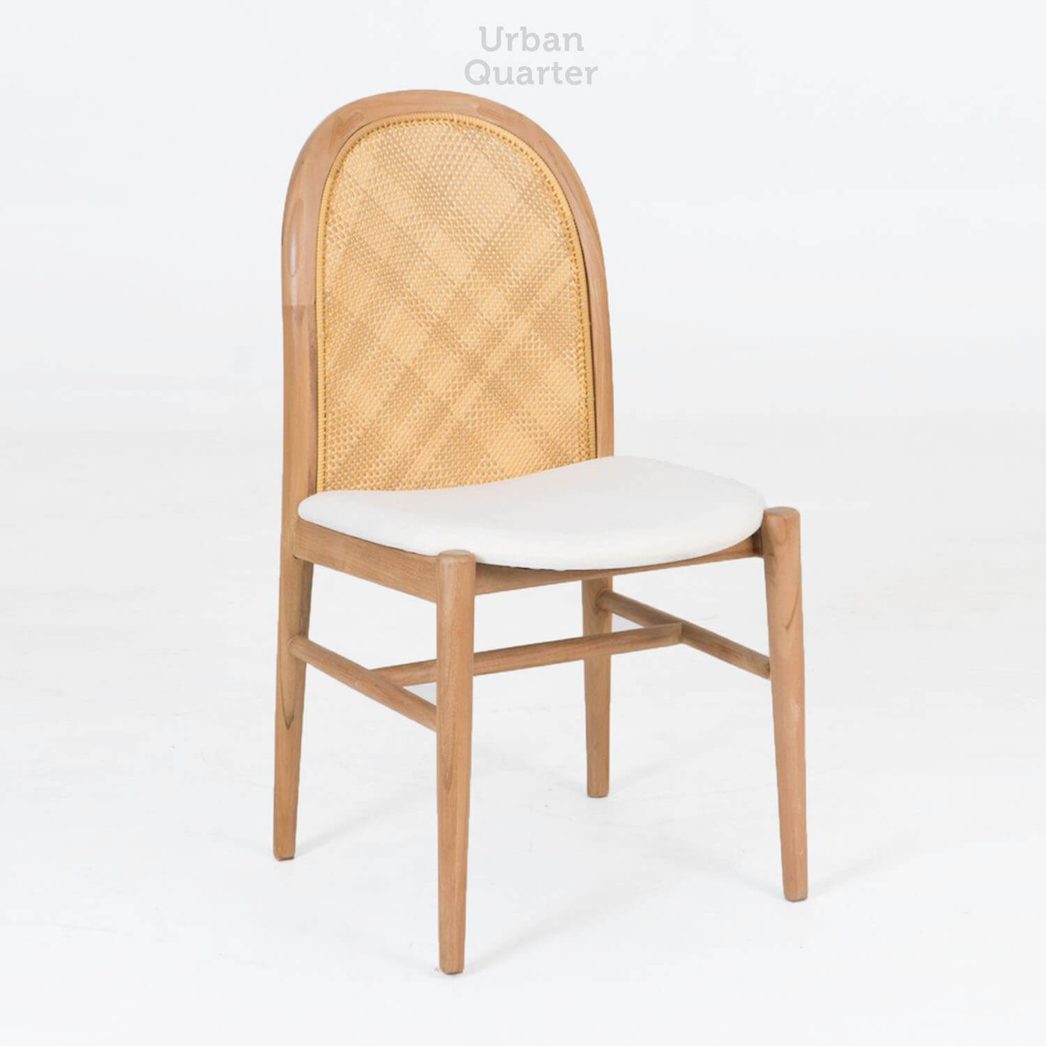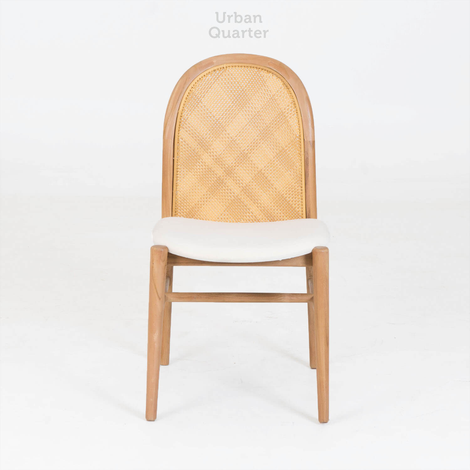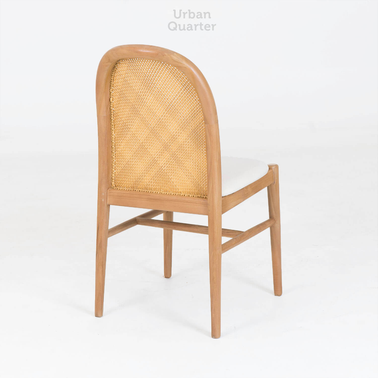 2. Solid kiln-dried teak wood frame in natural finish with handwoven natural rattan inserts.