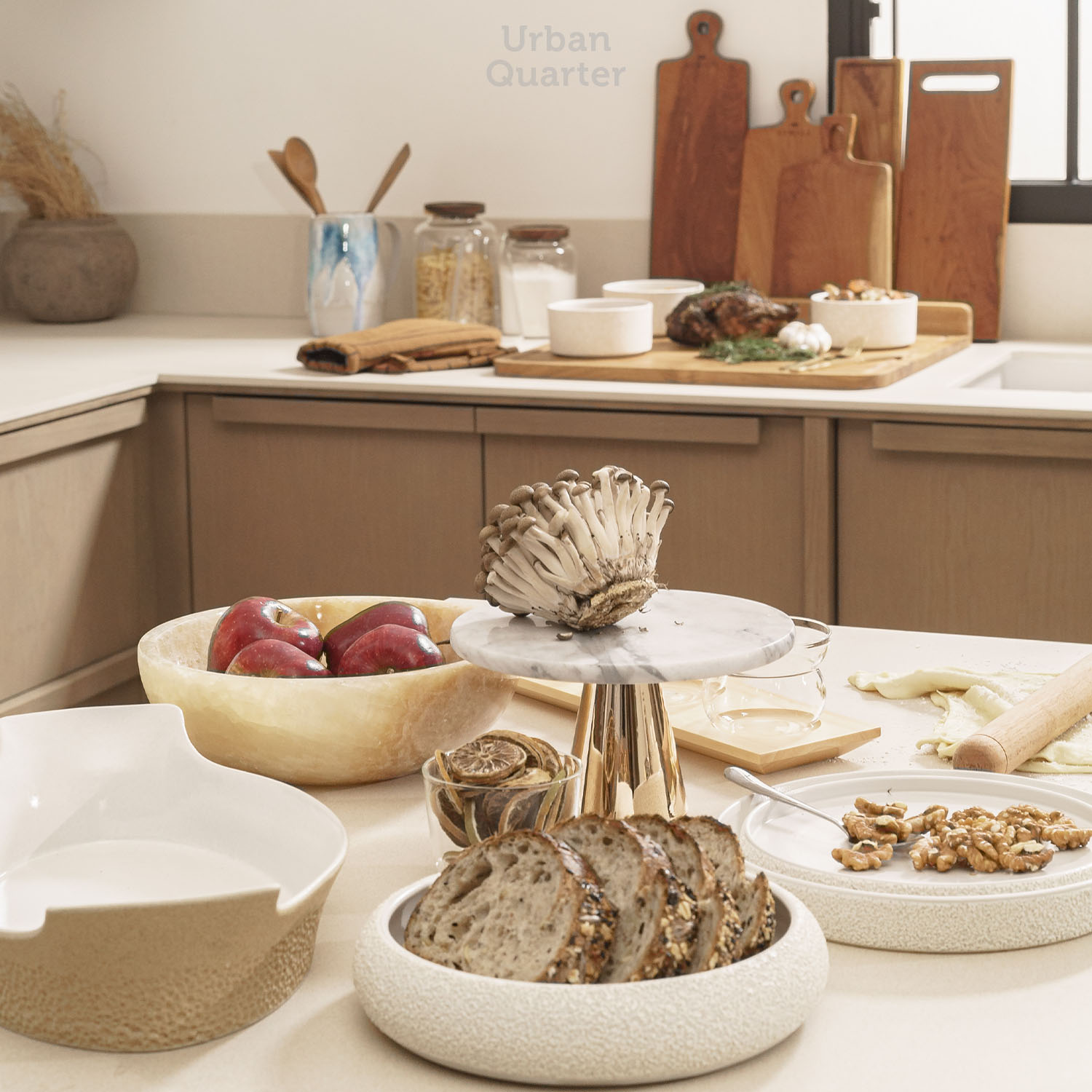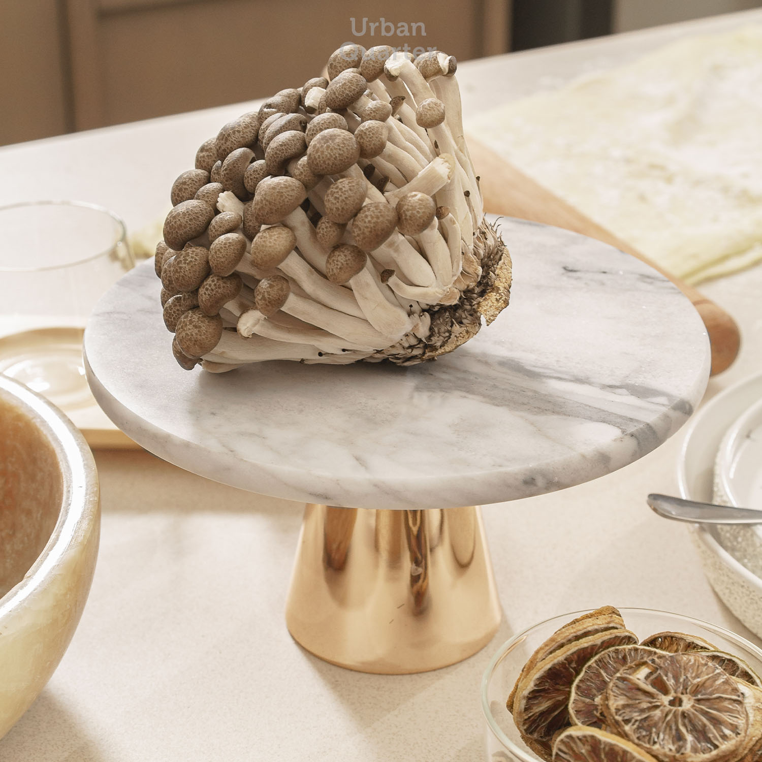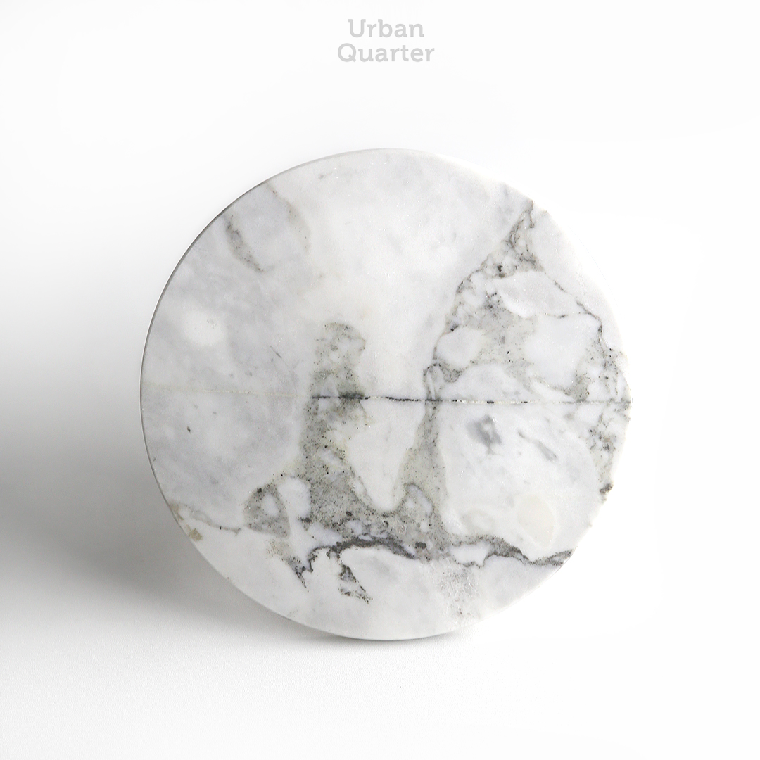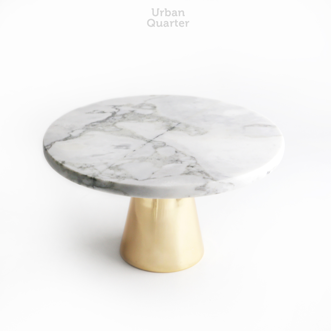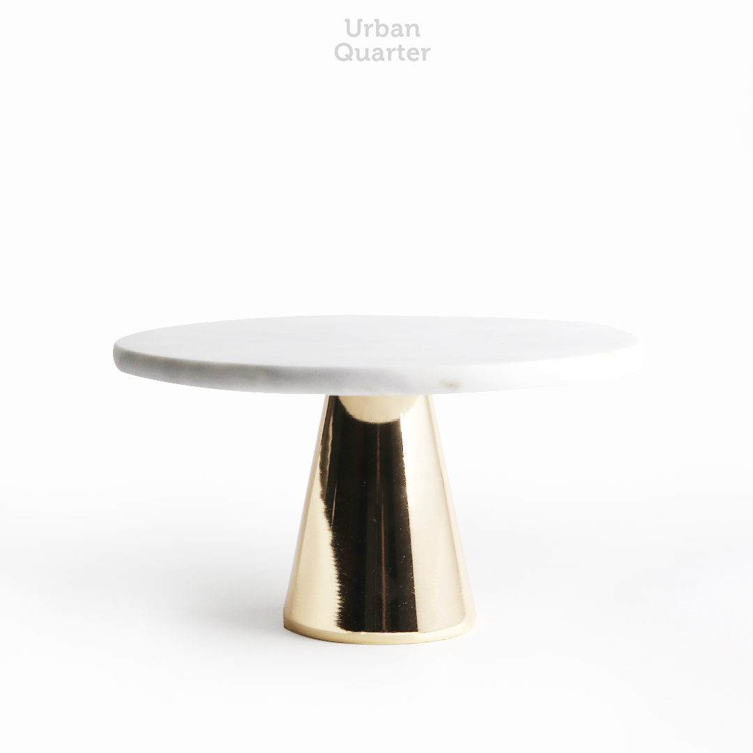 An elegant marble stand that works for displaying your freshly baked cakes or for storing your jewelries and accessories. This modern marble stand is attached with a glossy brass pedestal to exude its chic design.