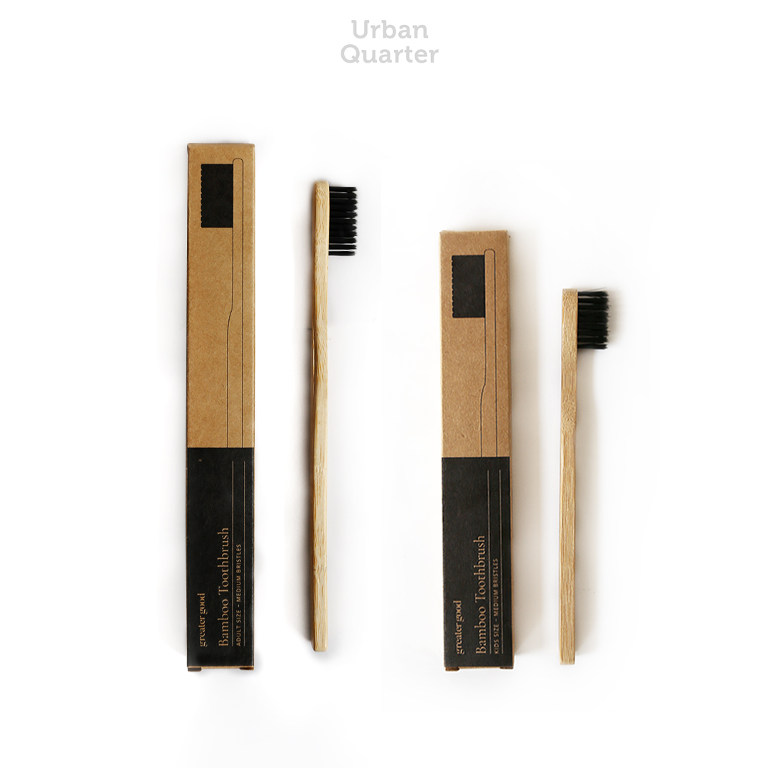 Made from bamboo charcoal, the Greater Good tooth brush is plant-based entirely from its bristles, handles to its paper box. This bamboo tooth brush will help to keep your teeth clean and fresh from the natural properties of the charcoal.
