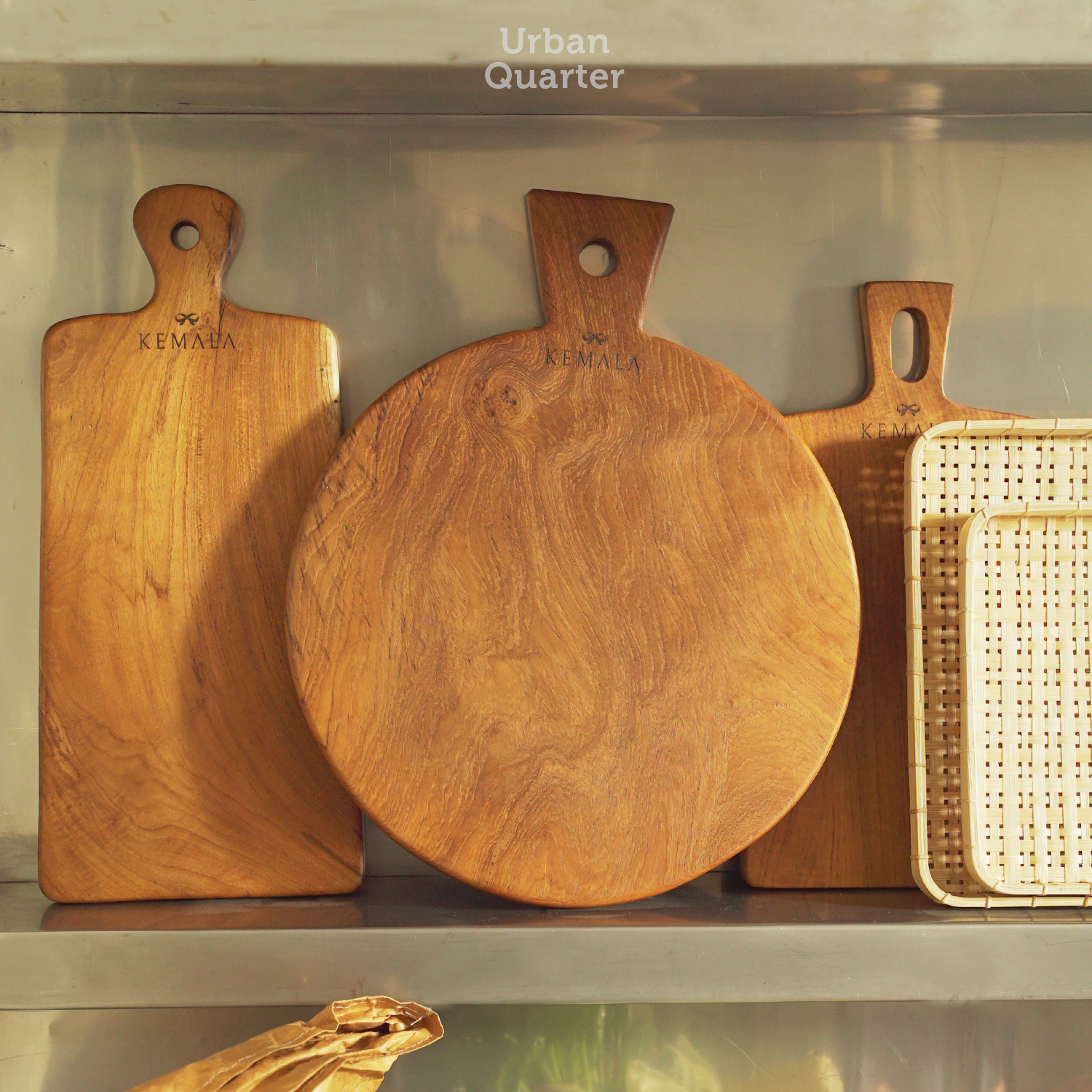 Taking pride in collaborating only with fairly and ethically oriented artisans across Indonesia, Kemala uses only responsibly sourced and SVLK-certifiied solid teak wood for all of their wooden tableware. The round teak board is ideal as a chopping board or for serving food. Polished with food grade beeswax finishing, this board is safe for use for eating or for displaying your home decors.