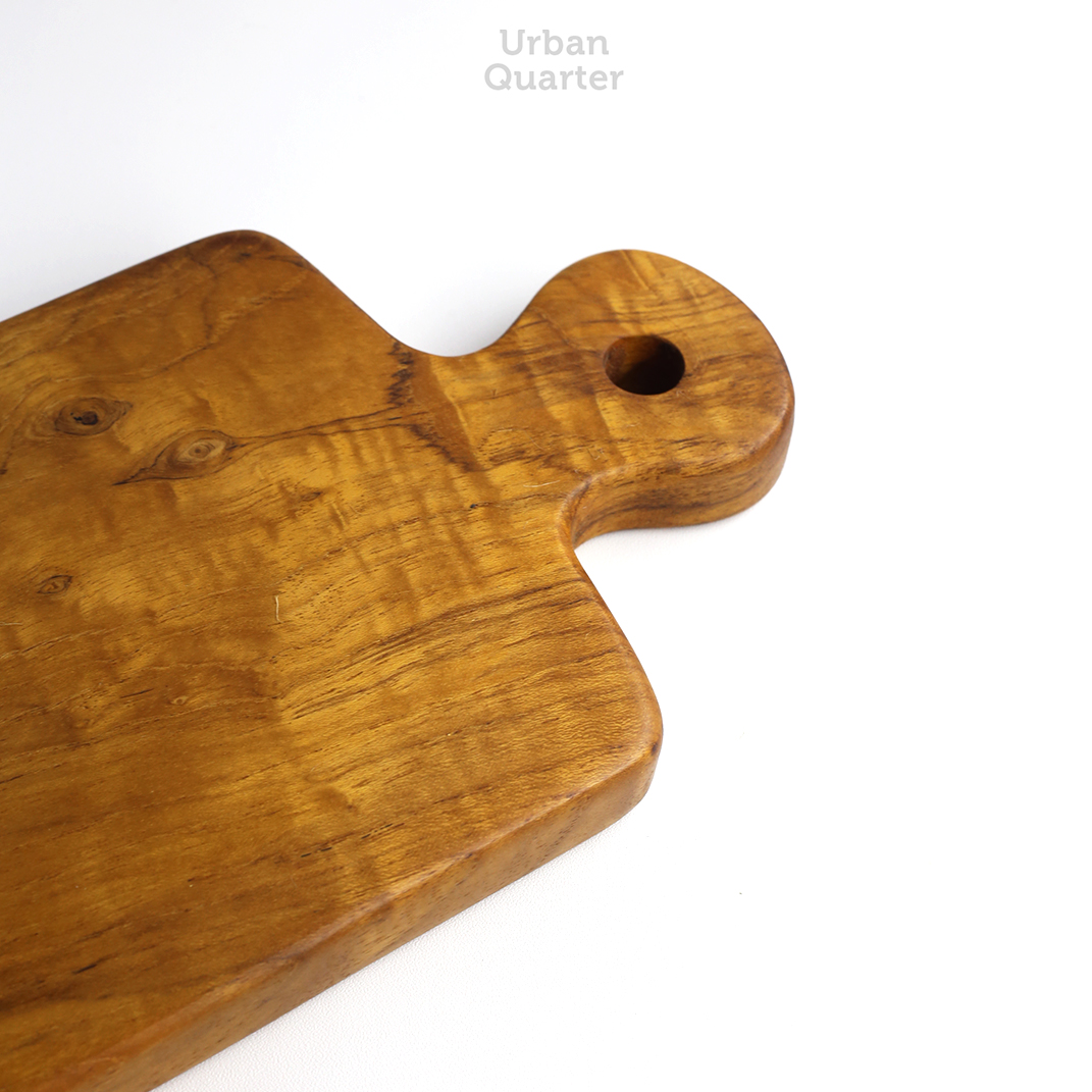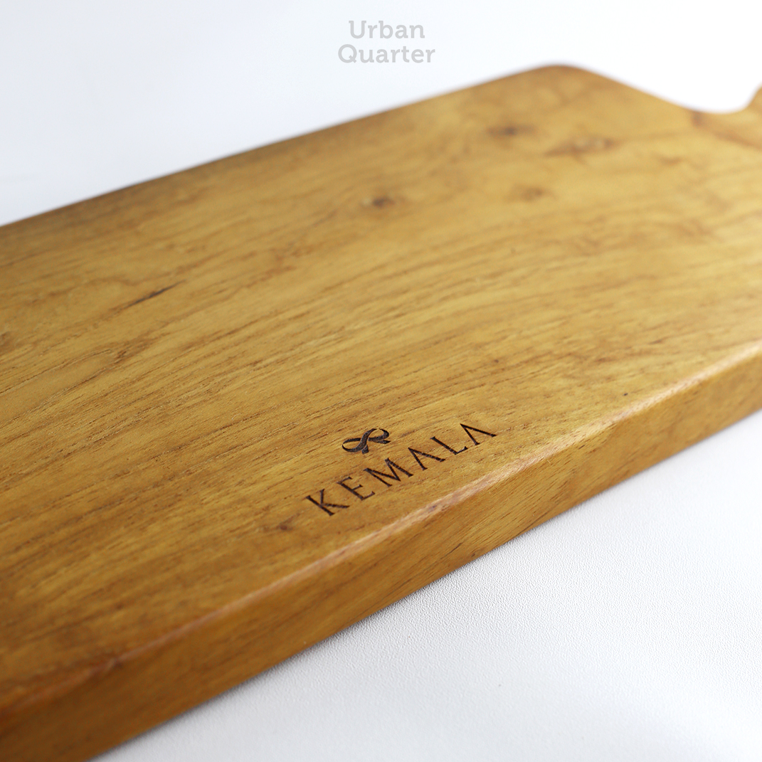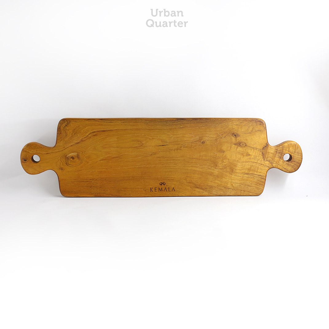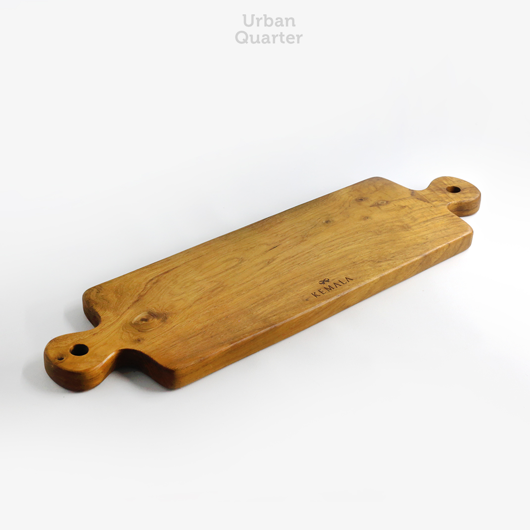 Taking pride in collaborating only with fairly and ethically oriented artisans across Indonesia, Kemala uses only responsibly sourced and SVLK-certifiied solid teak wood for all of their wooden tableware. The skinny teak board has dual handles that makes the board ideal for serving while giving practicality for handling and for cleaning. Polished with food grade beeswax finishing, this board is safe for use for eating or for displaying your home decors.