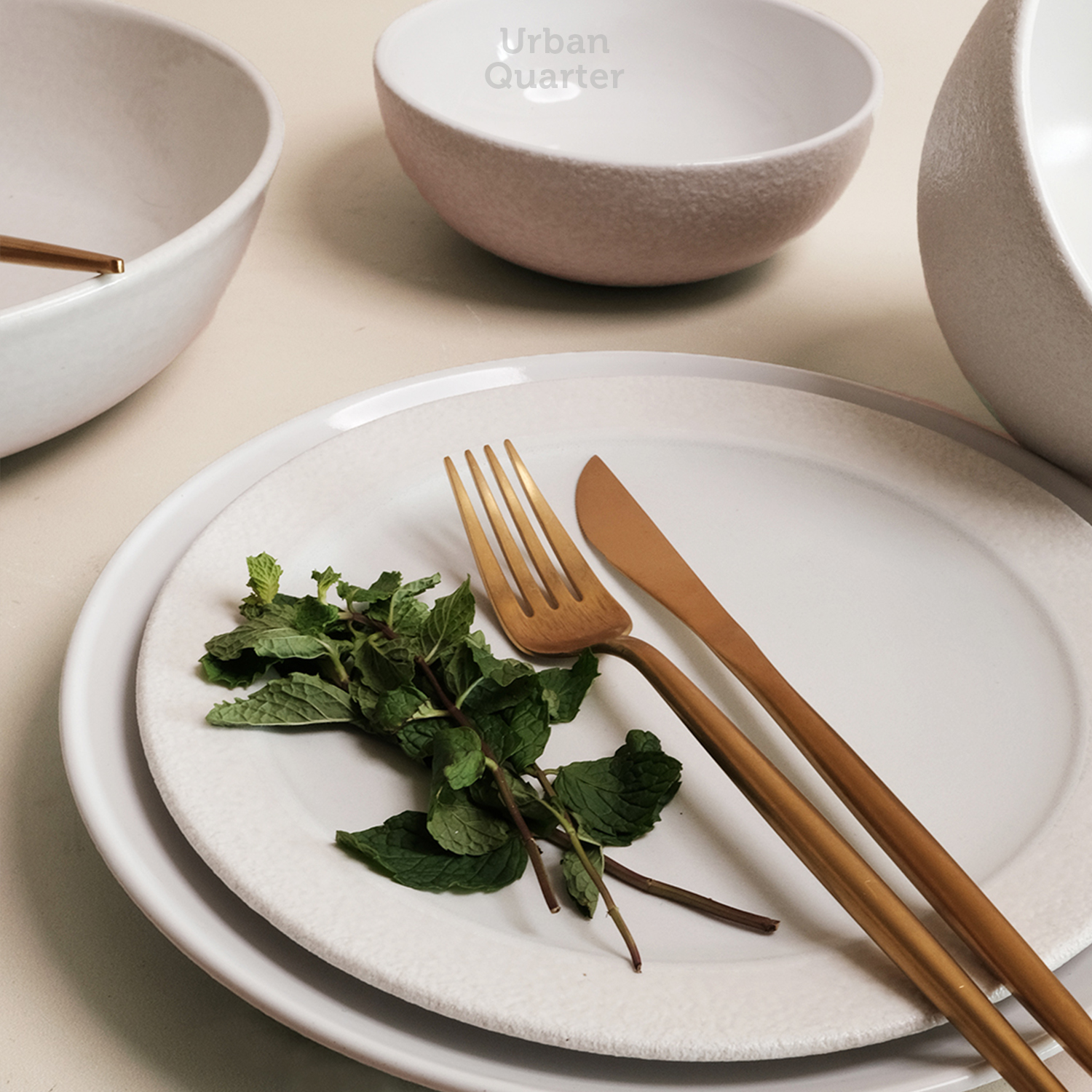 Minimalistic tableware that pairs a slight textured, matte and shiny finish on its outside. Meet the White Coral collection by Kevala, a simple, versatile and what we call a dining essential for all occassions. Available in different sizes, from dinner plates to soup and noodle bowls.