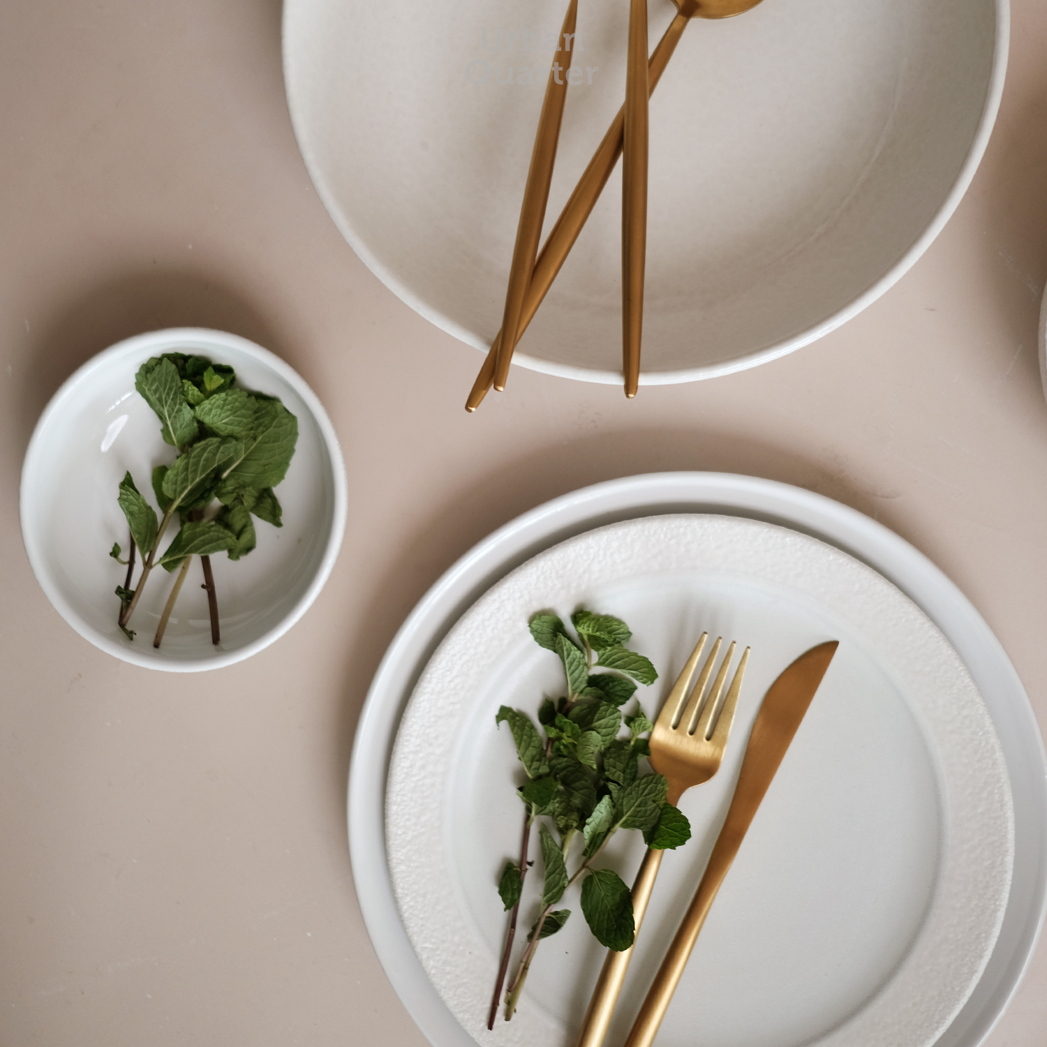 Minimalistic tableware that pairs a slight textured, matte and shiny finish on its outside. Meet the White Coral collection by Kevala, a simple, versatile and what we call a dining essential for all occassions. Available in different sizes, from dinner plates to soup and noodle bowls.