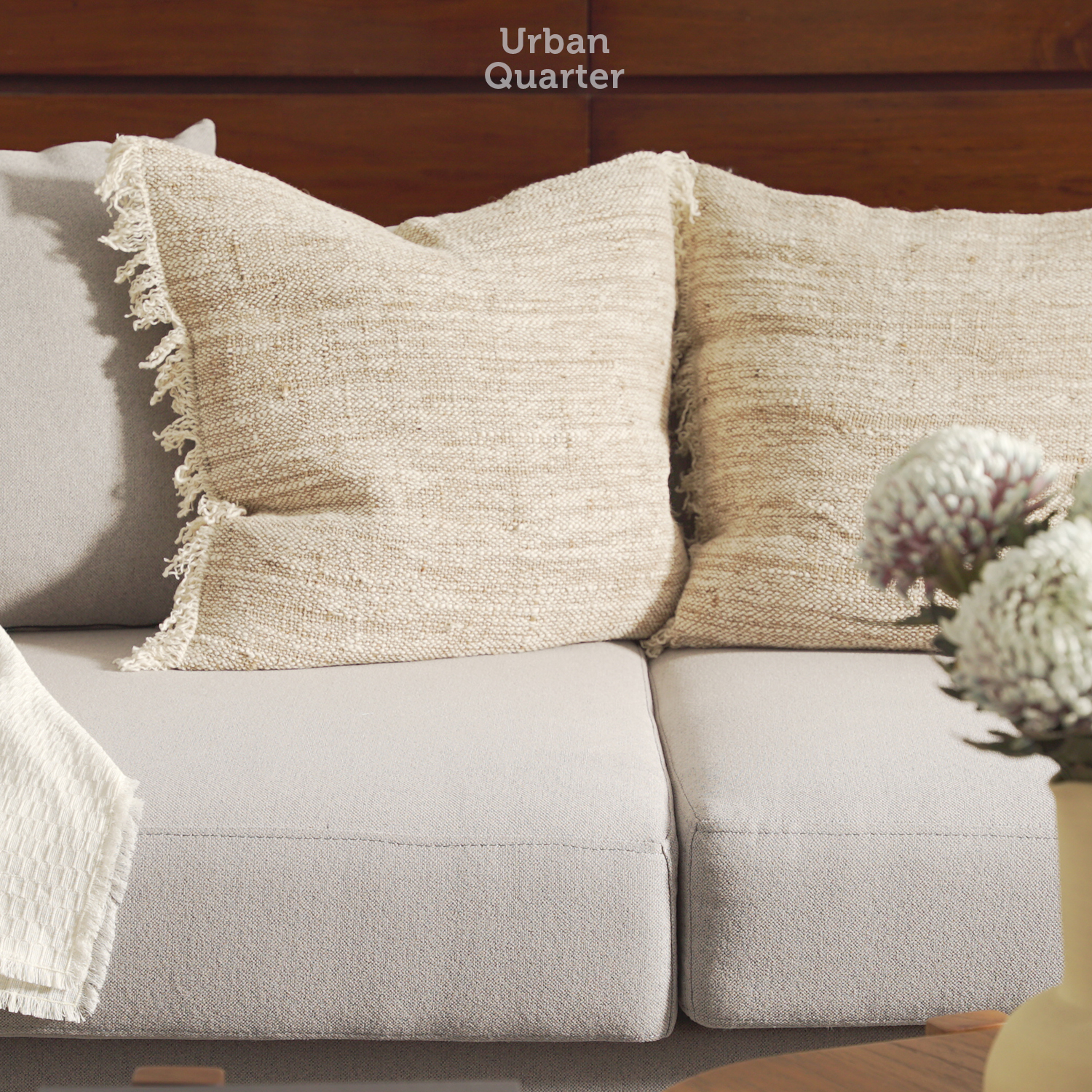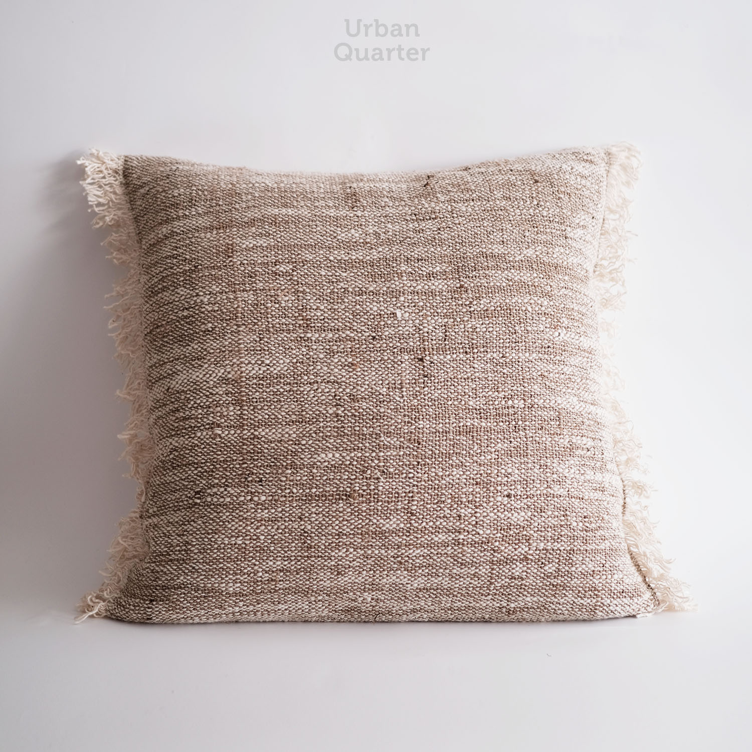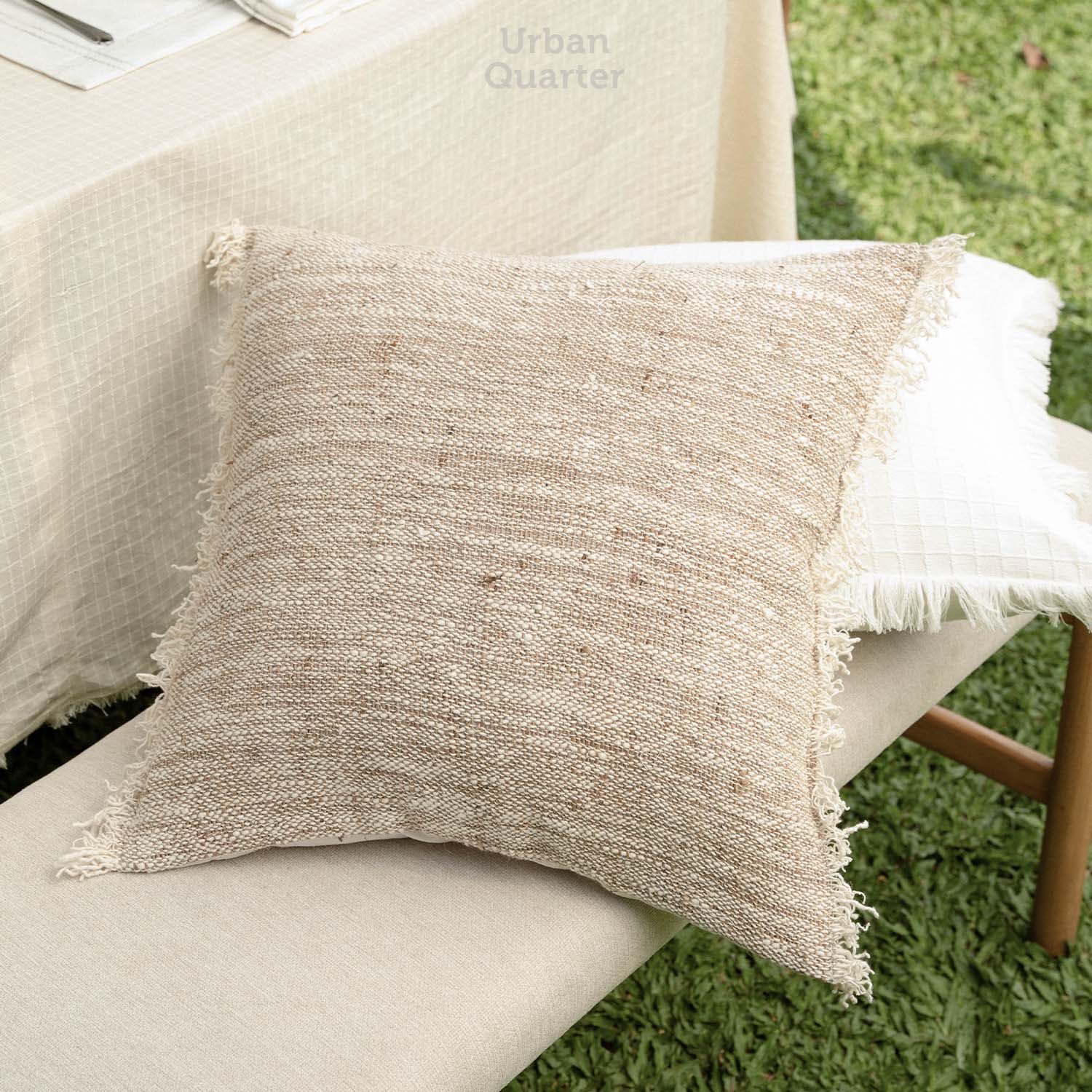 Made with 100% cotton, the Goni handwoven cushion by Lana Daya is inspired by the traditional burlap sack that is usually made with natural fibers. Its textural fringe adds refined dimension to rooms especially through its subtle tone.