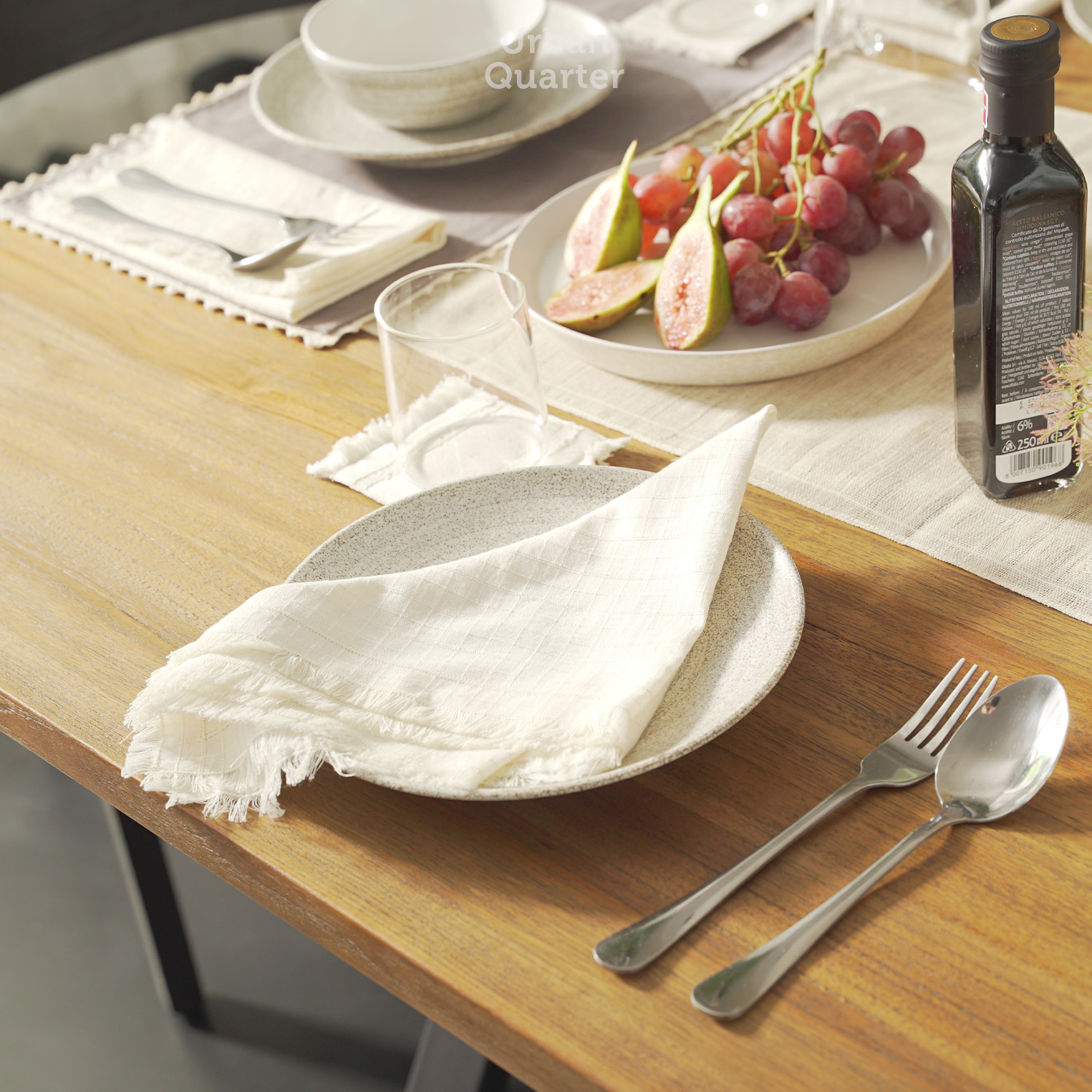 The Kadir Kotak collection by Lana Daya embraces minimalistic, farm house patchwork design using 100% handwoven cotton. Adding a laidback elegance to your dining table, this collection elevates your everyday dining.