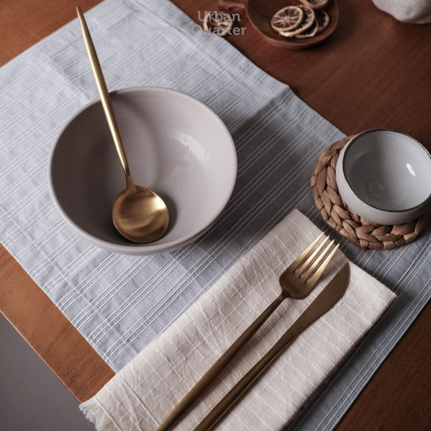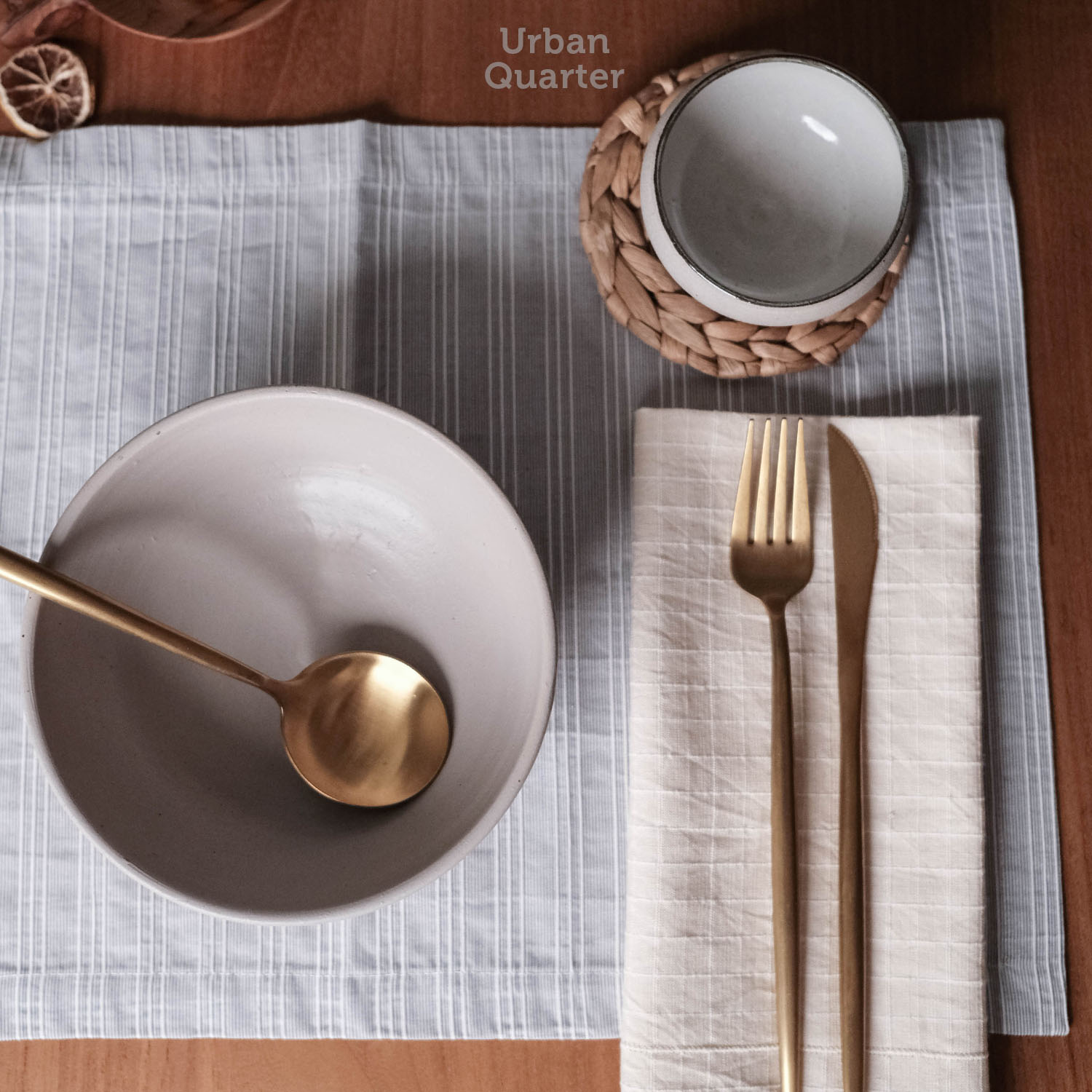 Designed to give a playful accent in your home just like its name, ‘Layang Biru’ means kite in Bahasa Indonesia. With its greyish blue hues and stripes, this collection by Lana Daya has a subtle, textured look to fit into every style of home. The striped textural pattern will add a touch of depth in your dining table and just the right amount of balance to its simplicity.