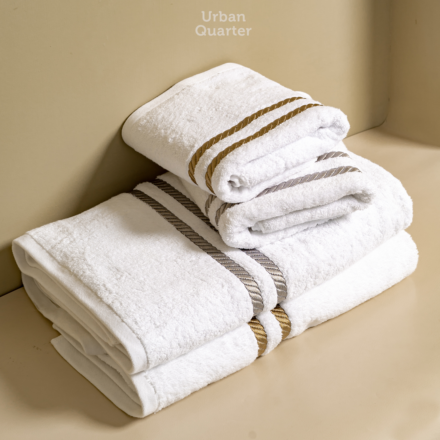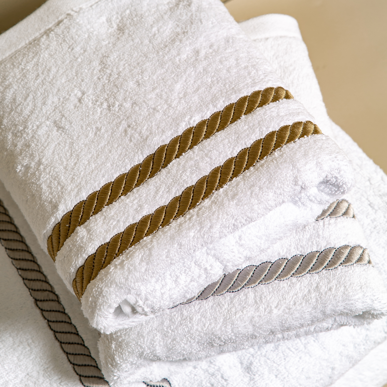 2. 100% premium cotton with high absorbency. Available in 2 embroidery colors: grey and bronze.