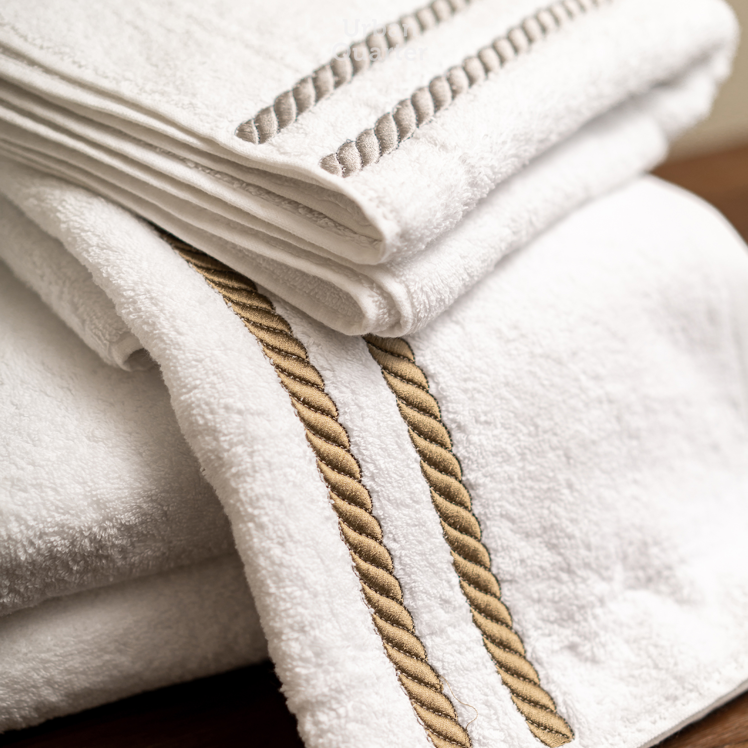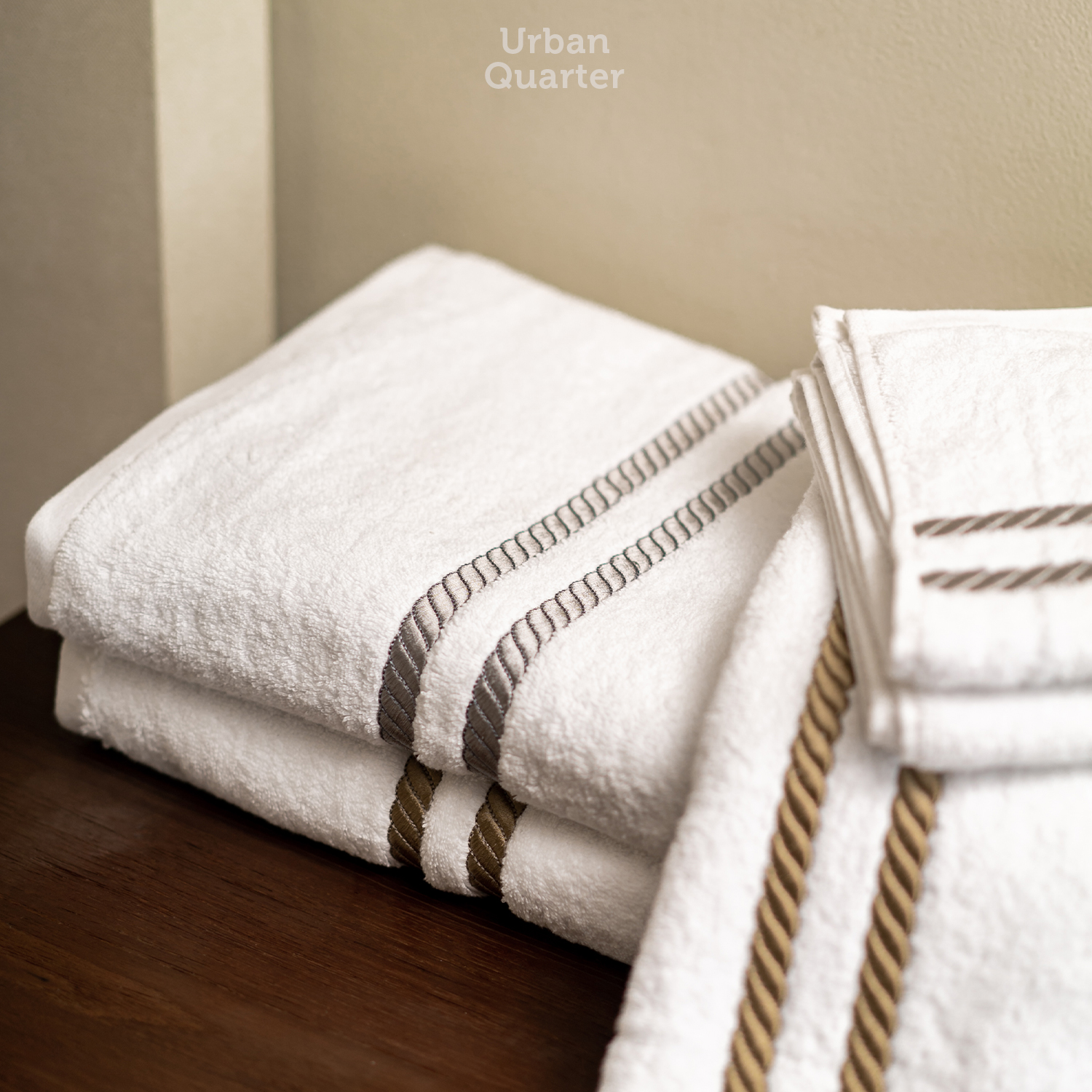 2. 100% premium cotton with high absorbency. Available in 2 embroidery colors: grey and bronze.