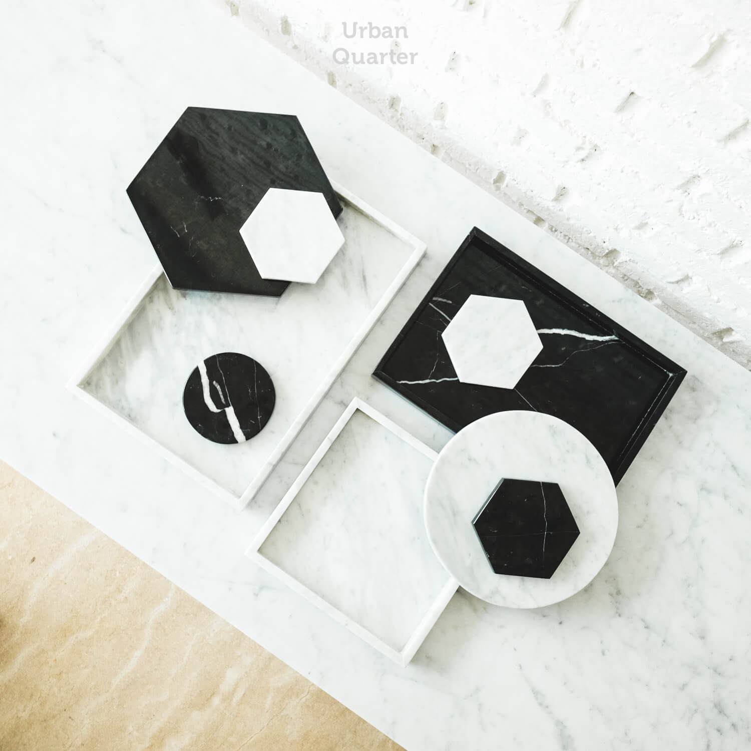 Impressive pieces. Local-based designer, Mitan Designs, has created her collection of sleek marble trivets out of cut stone in a simple geometric shapes. Its warm and contemporary aesthetic simply adds sophistication to any room setting.