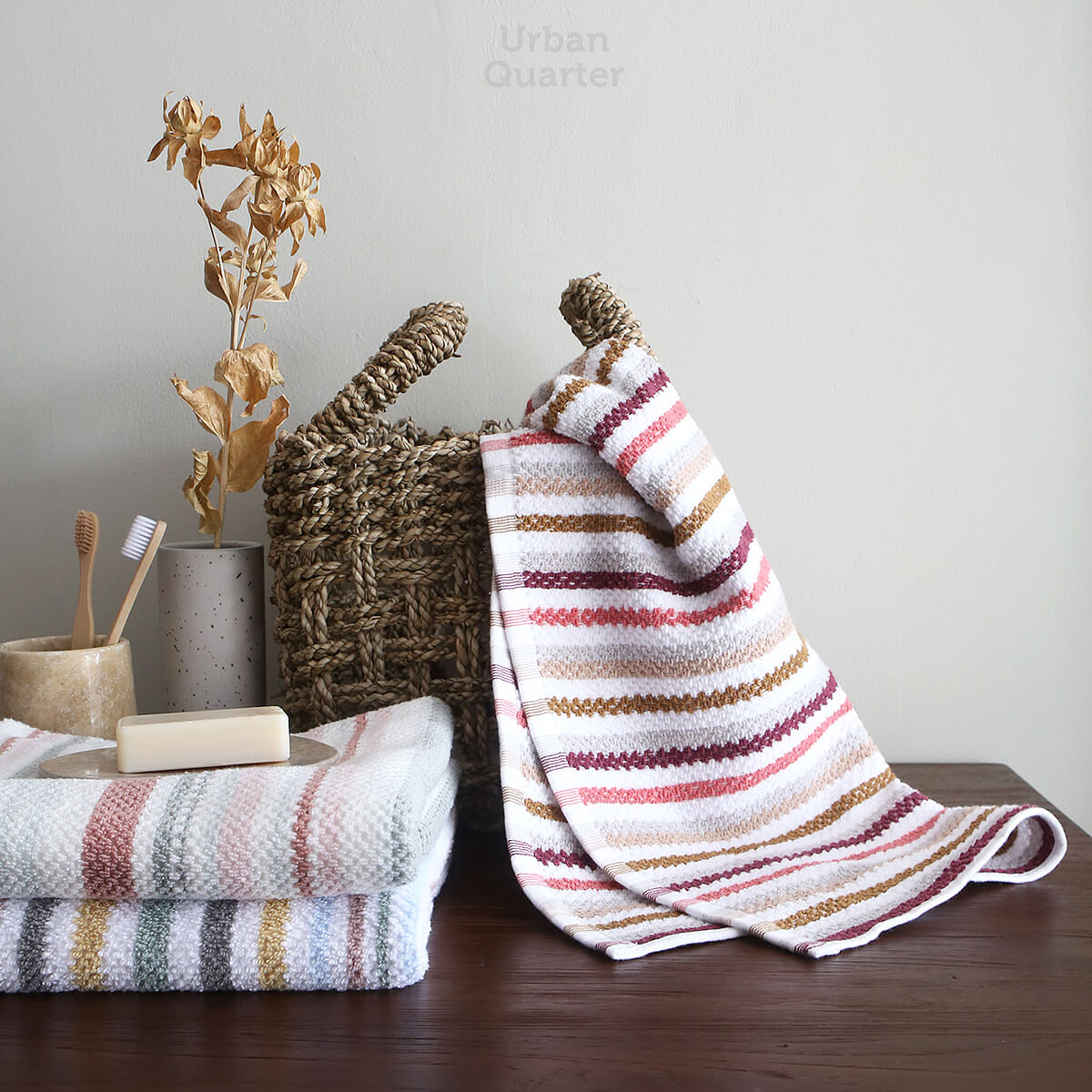 Playful and modern with a unique combination of colors that simply matches! The Nelly collection by Normn Home feature a range of face towels and hand towels made by 100% organic cotton. Perfect for traveling especially for a light and soft towel for your kids to use. This collection is definitely our personal favorite!