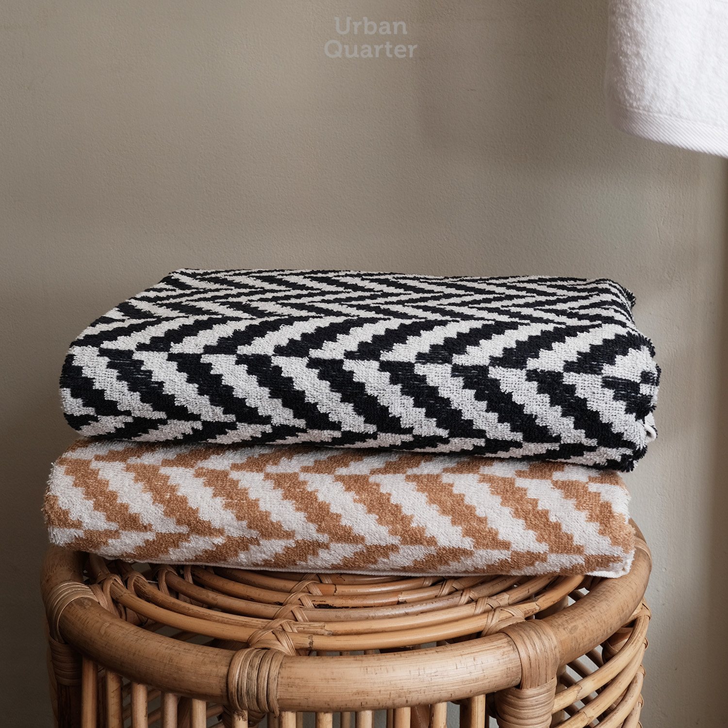 With its herringbone effect, the Nafa collection of towels by Normn Home is an updated take on timeless pattern with its earthy hue. Woven in organic cotton, this towel makes a classic statement in the guest or master bathroom.