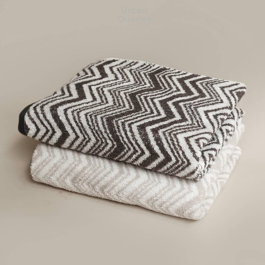 Artfully patterned and playful! The Nicole towels are soft and have easy absorbence as they are made with 100% organic cotton. With its bold zig-zag pattern, the Nicole towel brings an instant pop of color in your bathroom.