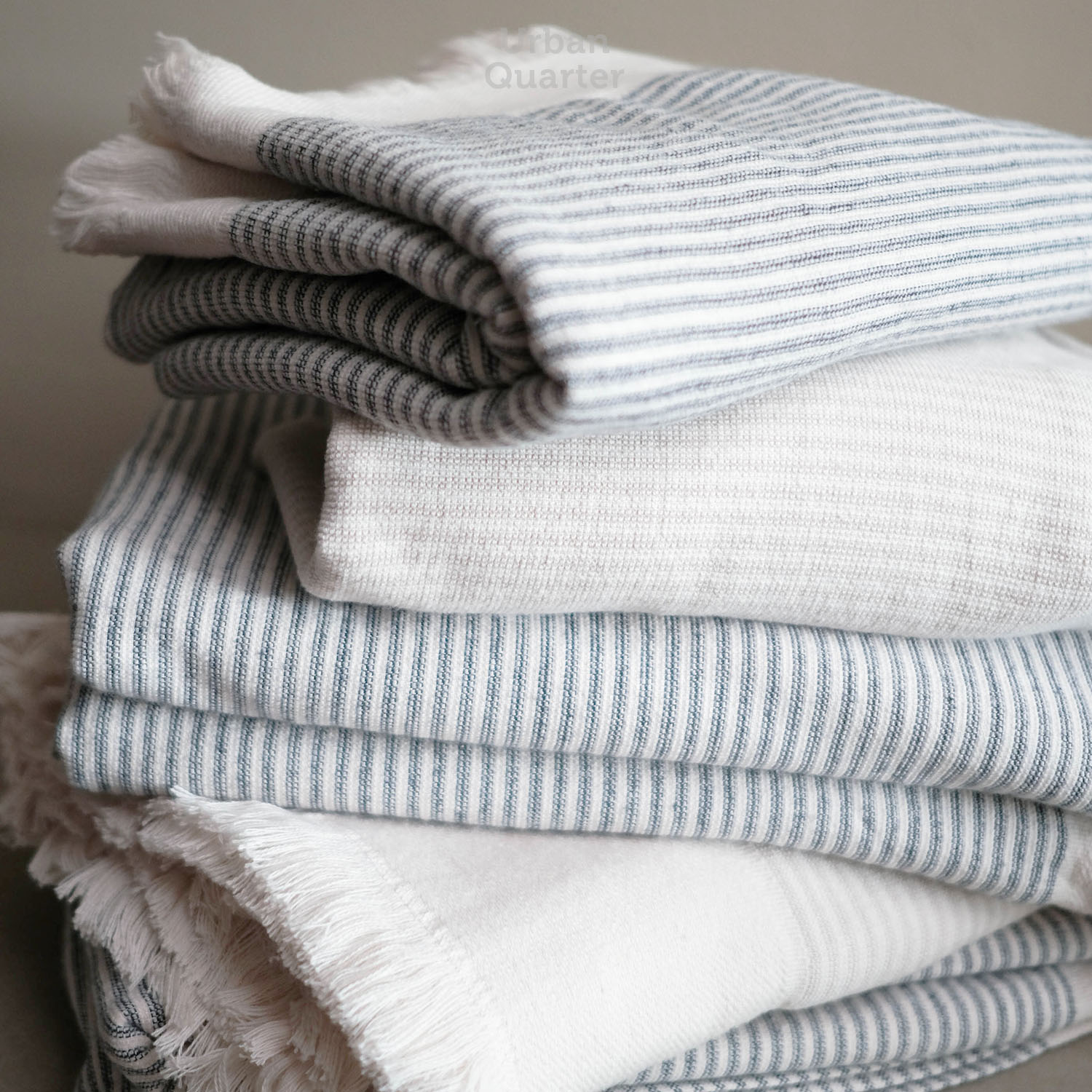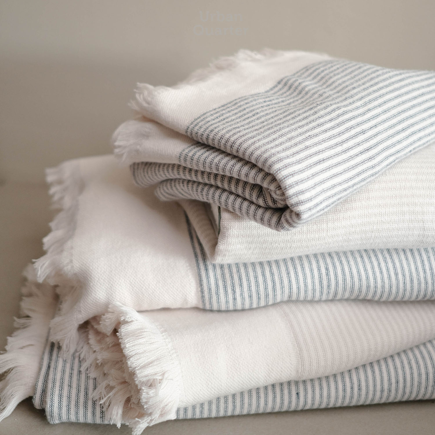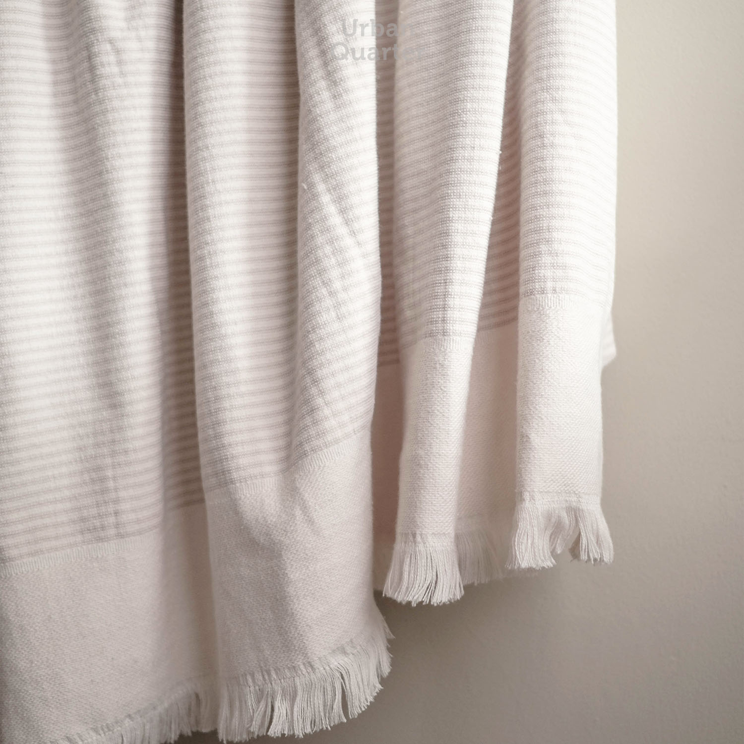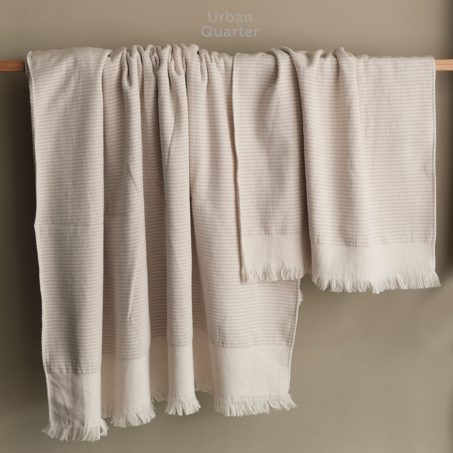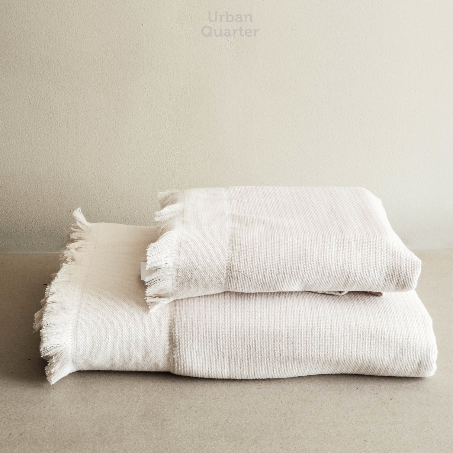 With its textured fringe and striped patterns, the Noble towels are designed to enable you to turn your bathroom into a natural sanctuary where you can practice self-care, reload and feel good at home. Available in 2 sizes: beach towel, which can also be used as a bath towel, and face towel.