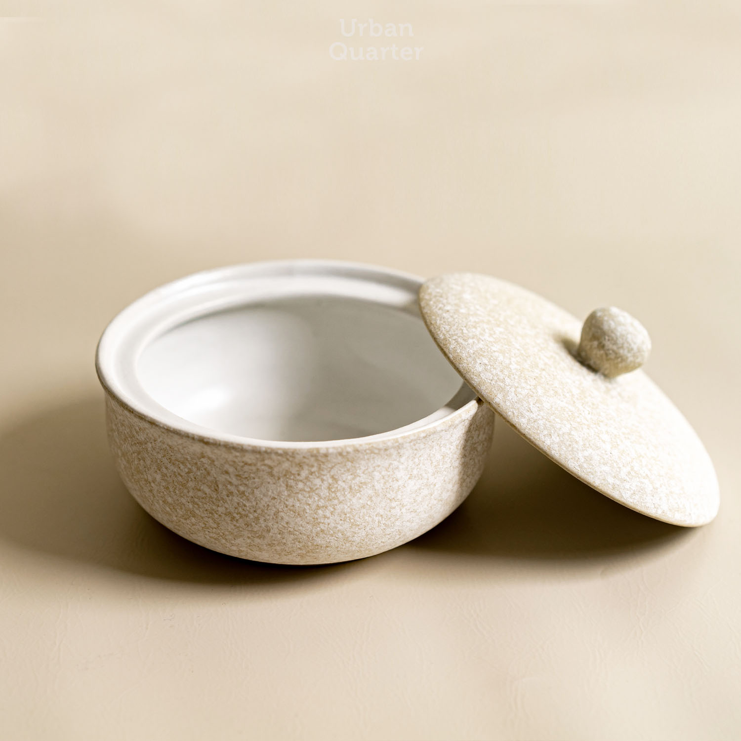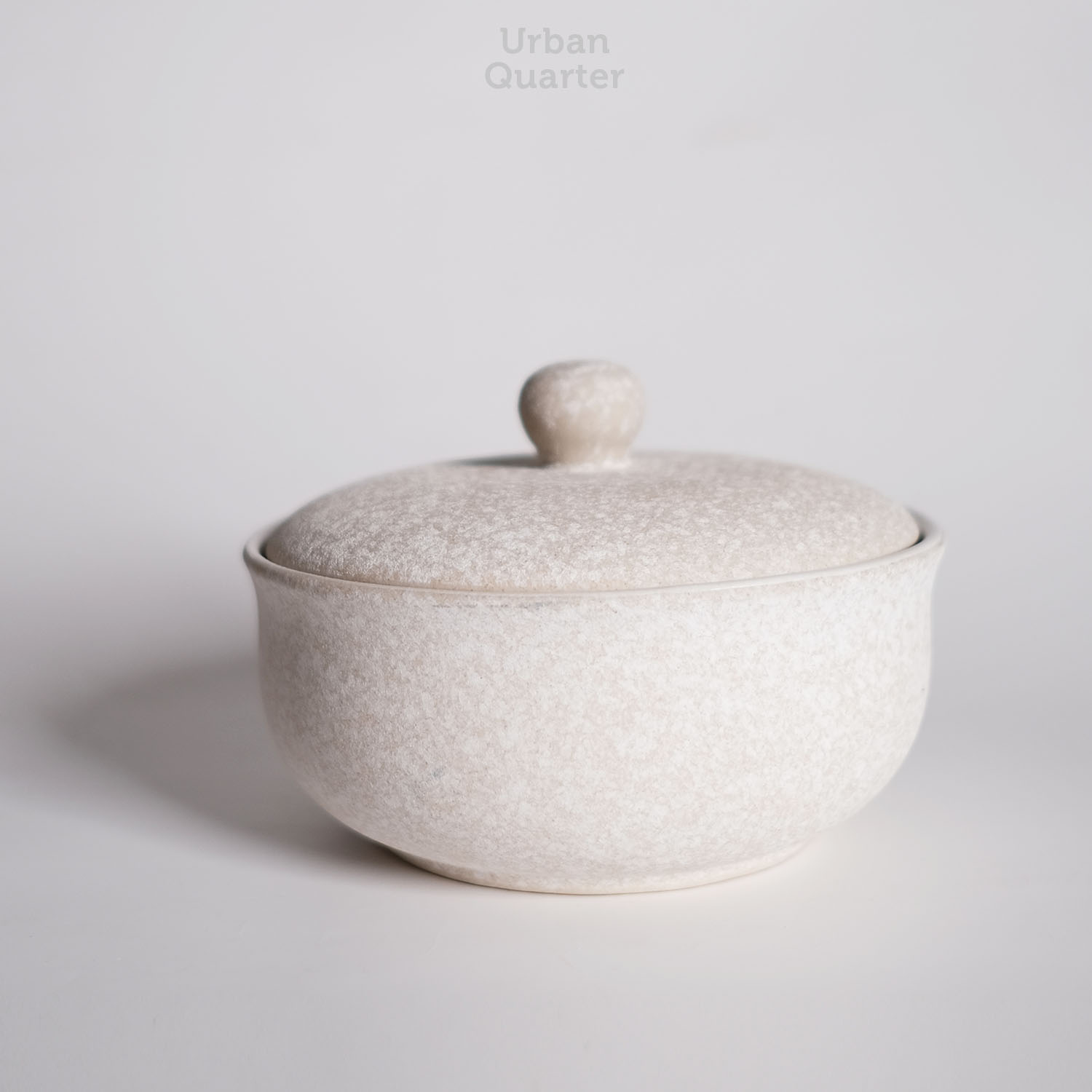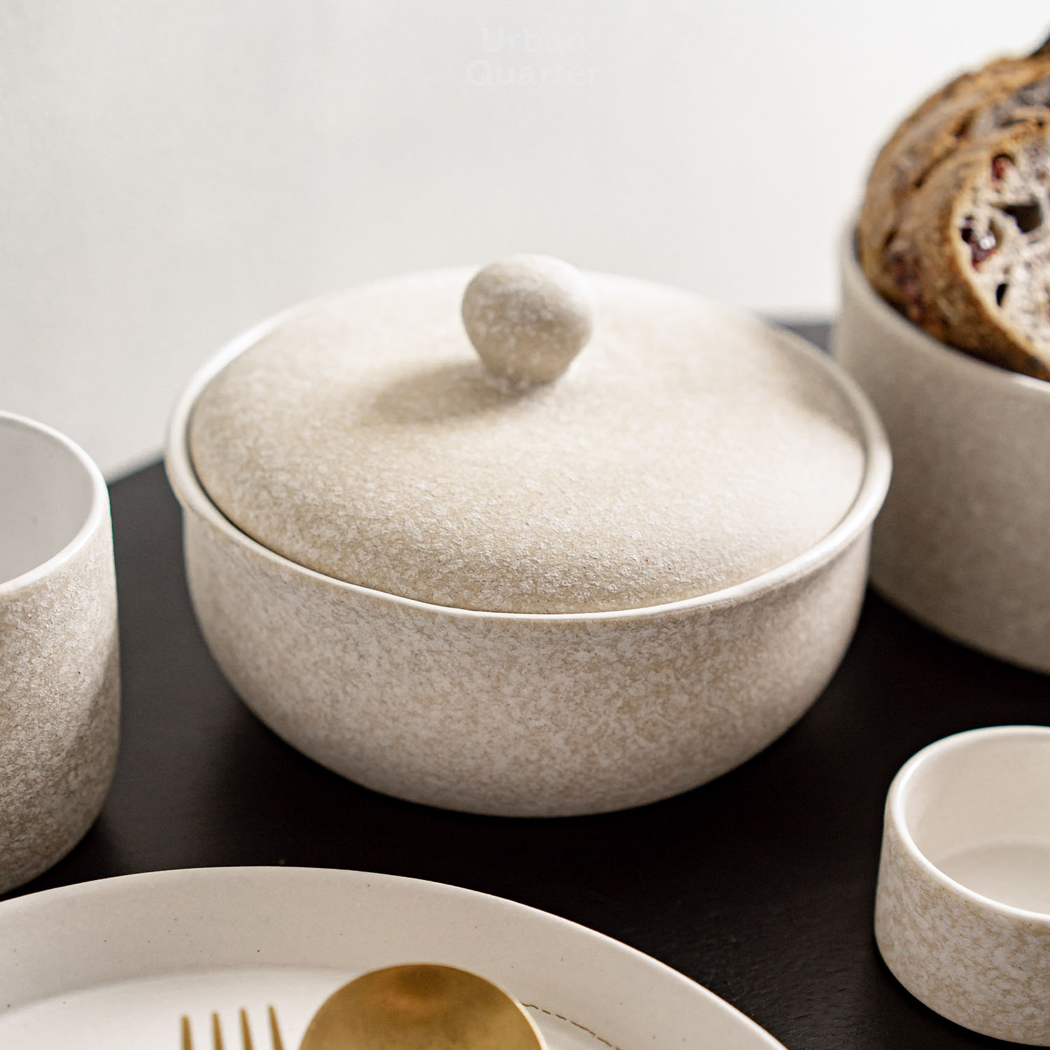 Hand-pressed with a lipped edge, Pebbles consists of a round stoneware form that is coated with a matte ivory reactive glaze that behaves beautifully when kiln-fired. The surfaces is a soft glazed texture while the outside is subtly crackled texture in a rich tonal mix. This collection consists of all the wonderful plates and bowls for serving and for your personal dining to mugs.