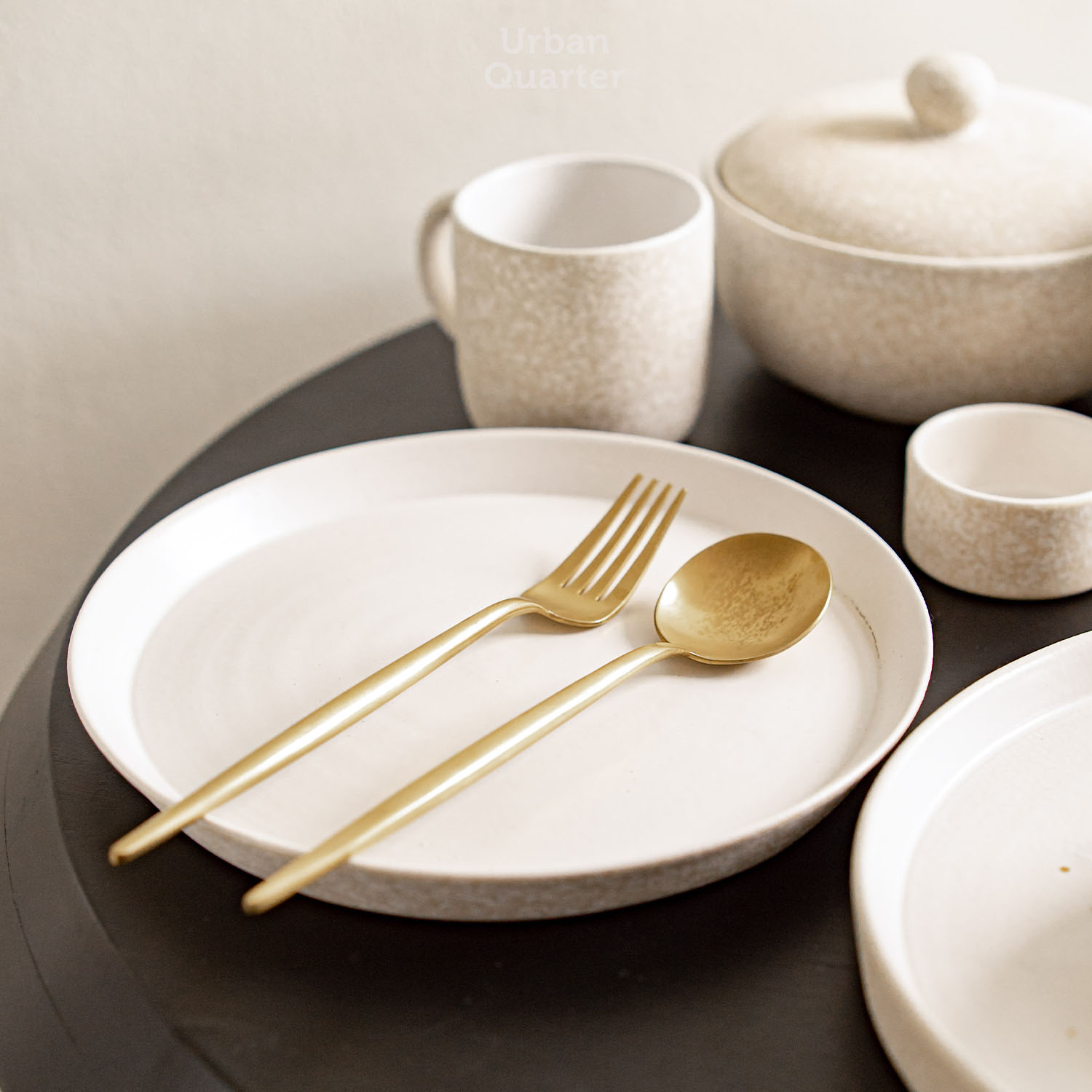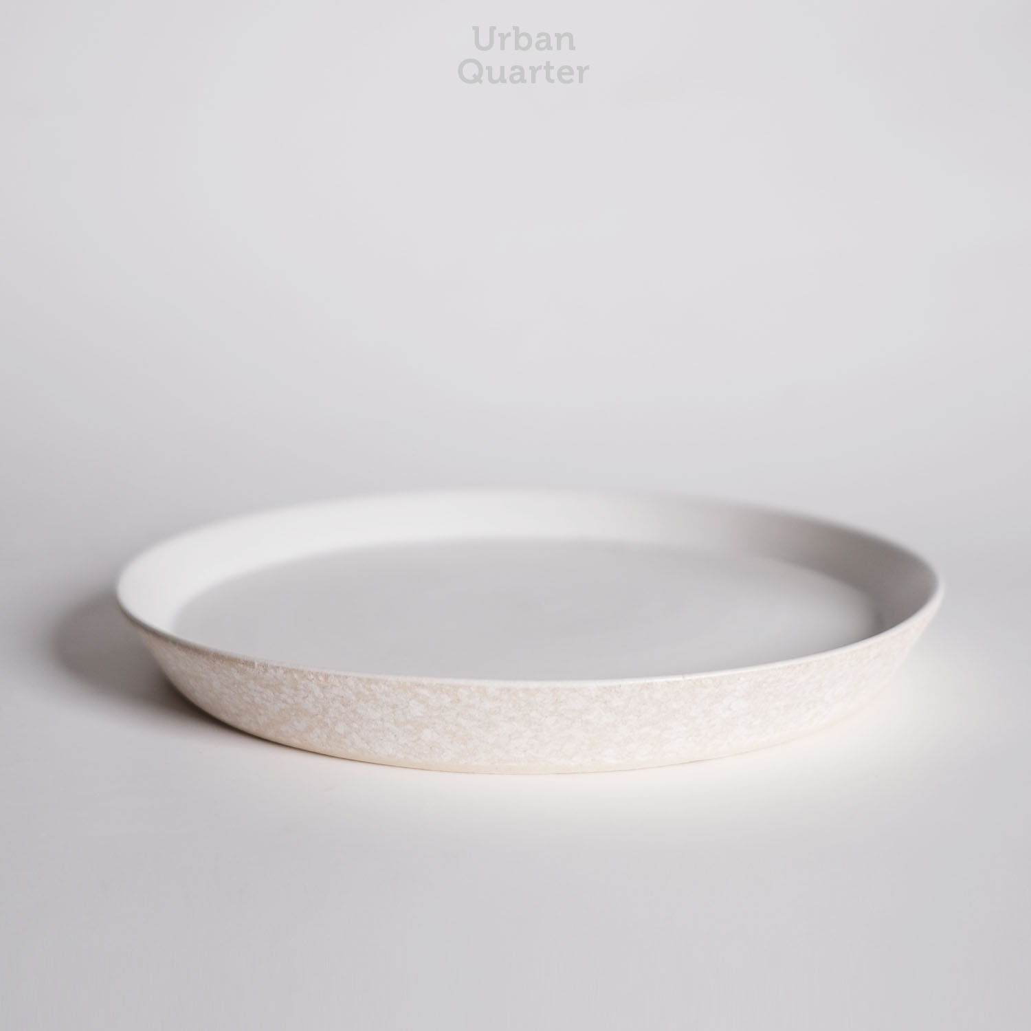 Hand-pressed with a lipped edge, Pebbles consists of a round stoneware form that is coated with a matte ivory reactive glaze that behaves beautifully when kiln-fired. The surfaces is a soft glazed texture while the outside is subtly crackled texture in a rich tonal mix. This collection consists of all the wonderful plates and bowls for serving and for your personal dining to mugs.