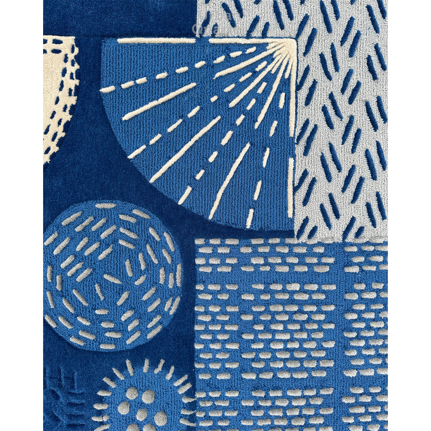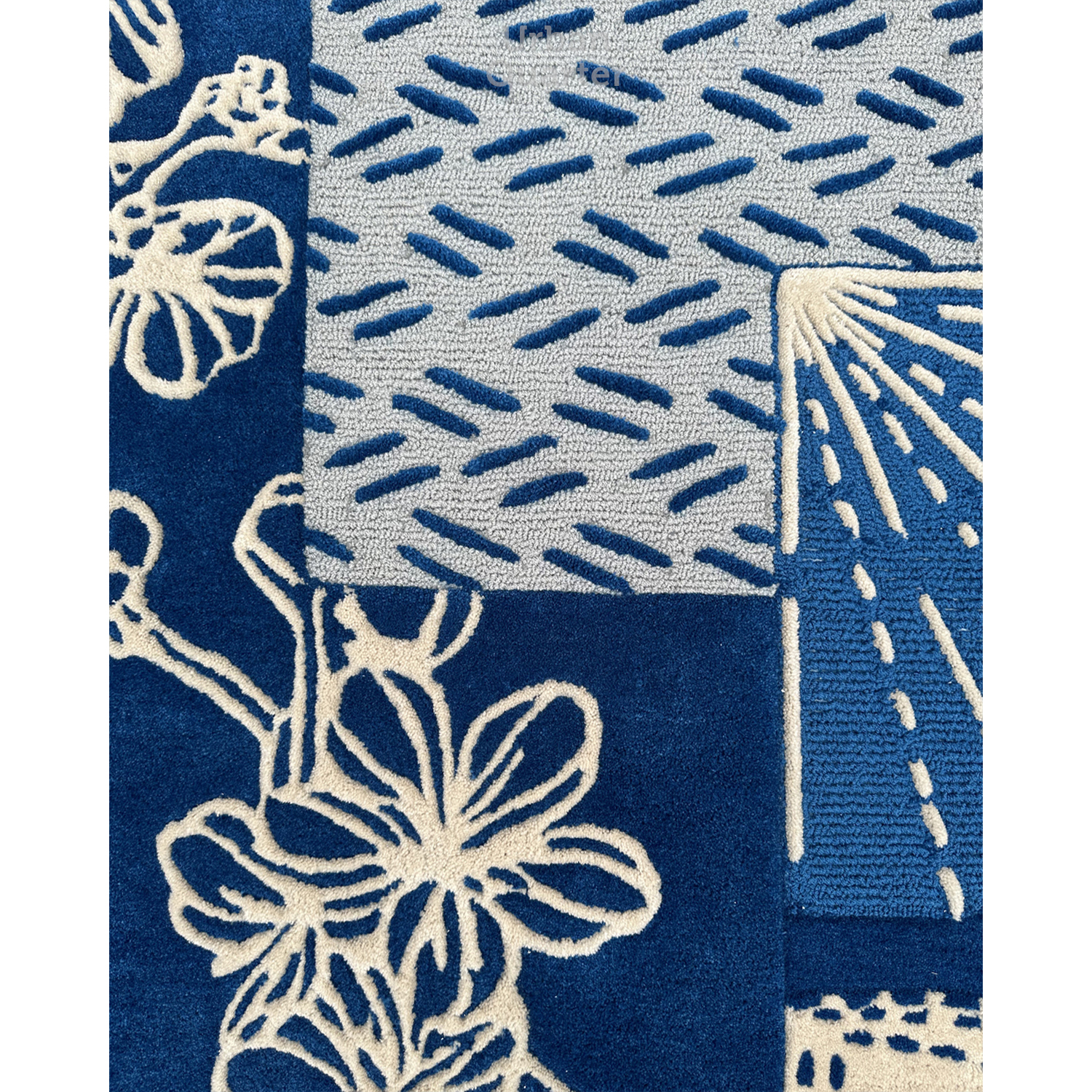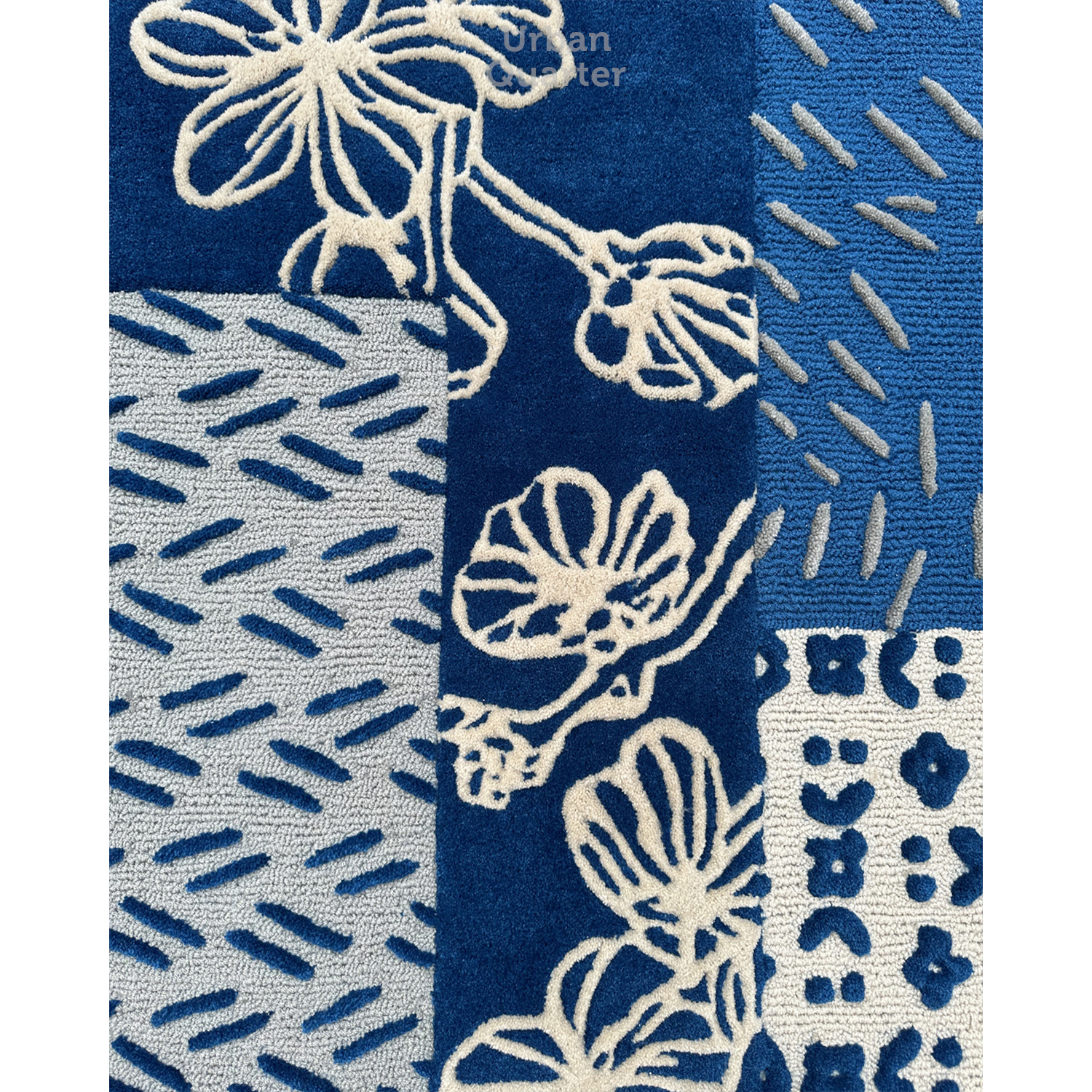 2. Handtufted modern rug in shades of blue using acrylic yarn.