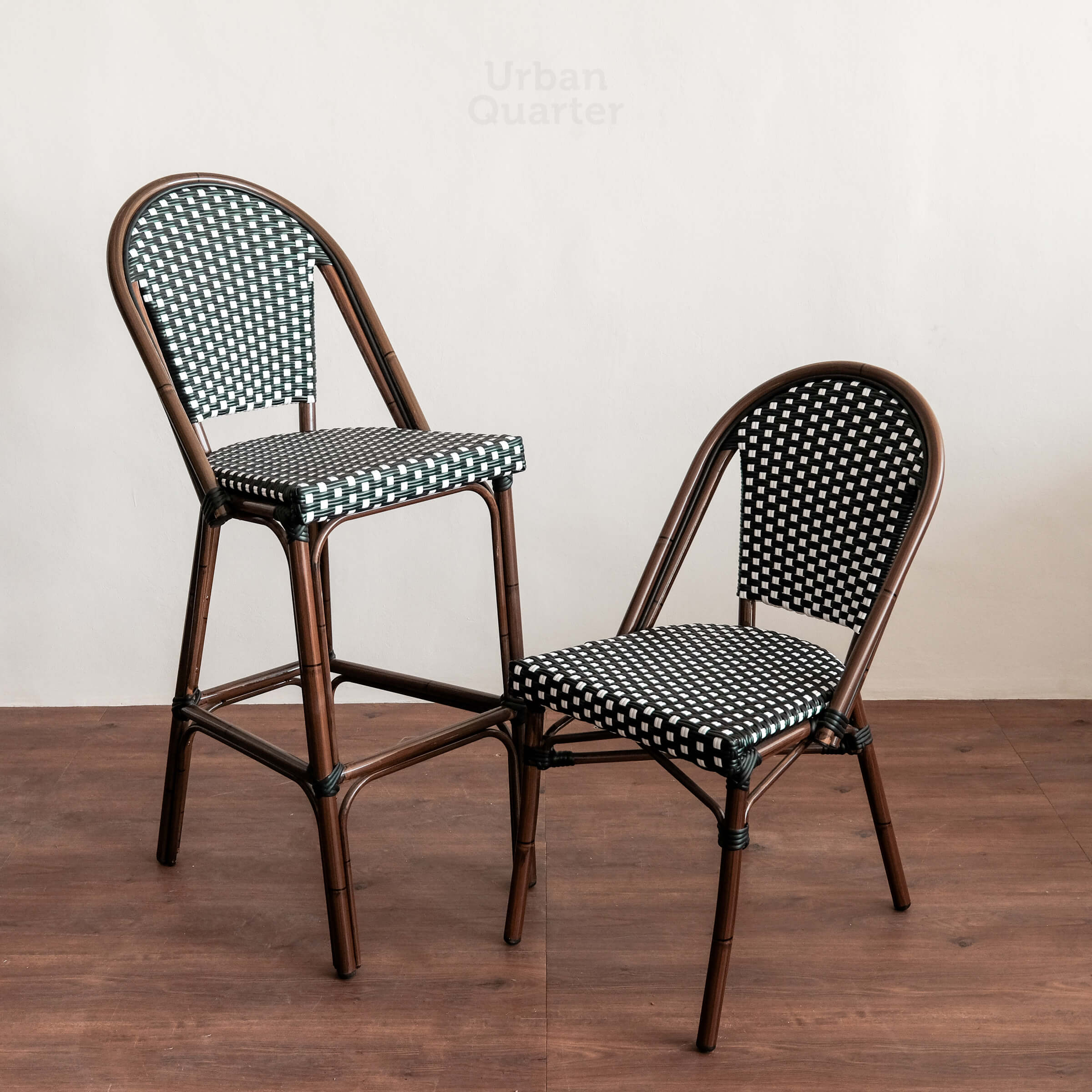 Our Rue Bar Stool invites you to get yourself comfortable outdoor and indoors with its wooden frame and back shaped perfectly for leaning. Also, with its most distinctive hallmark: its navy blue resin wicker weave.