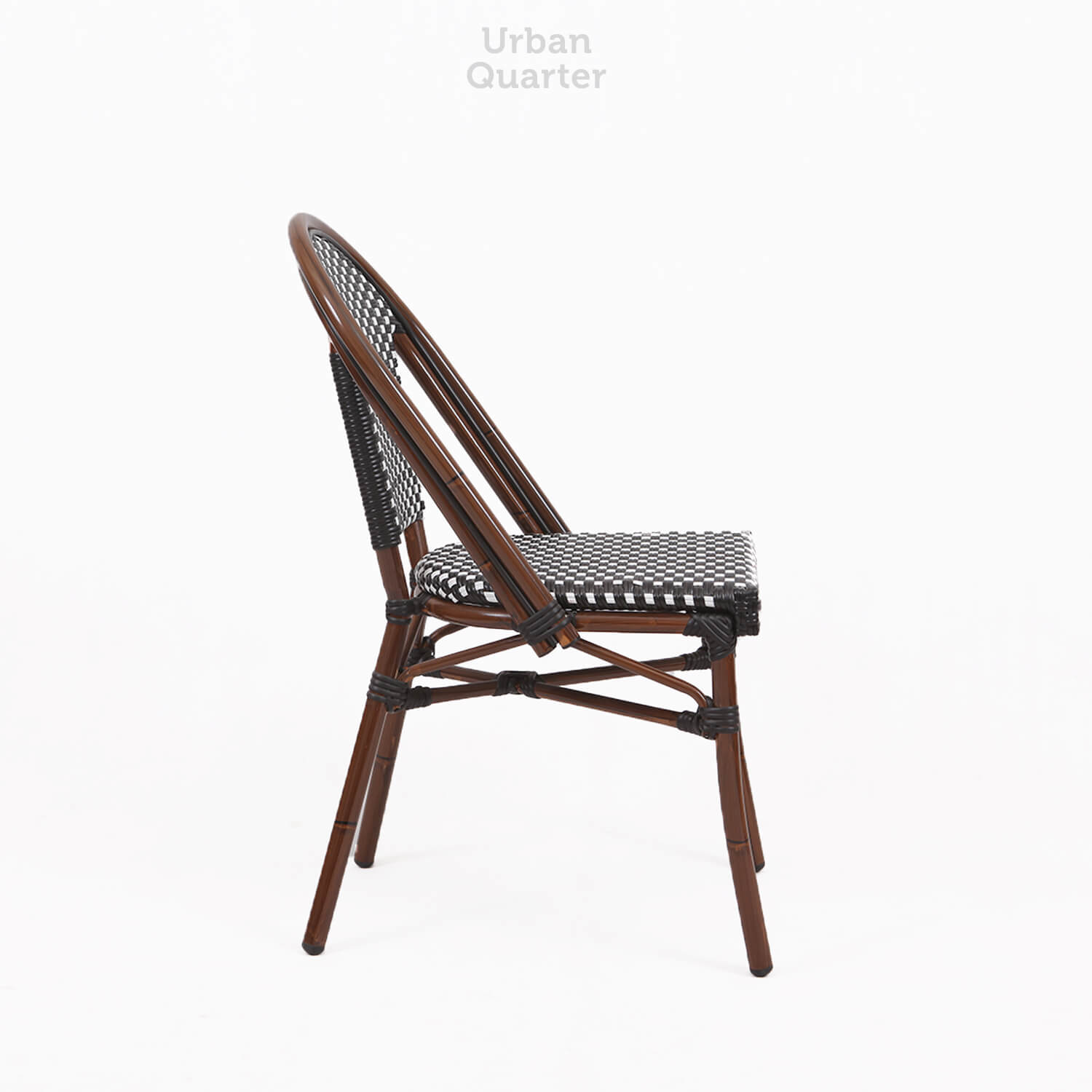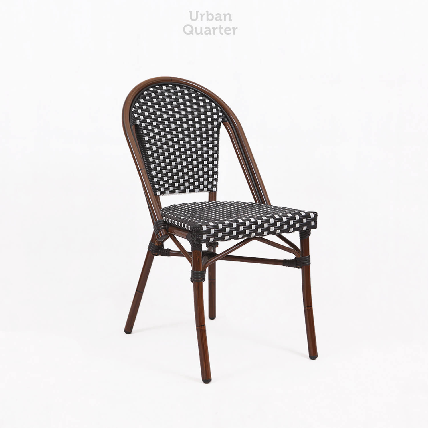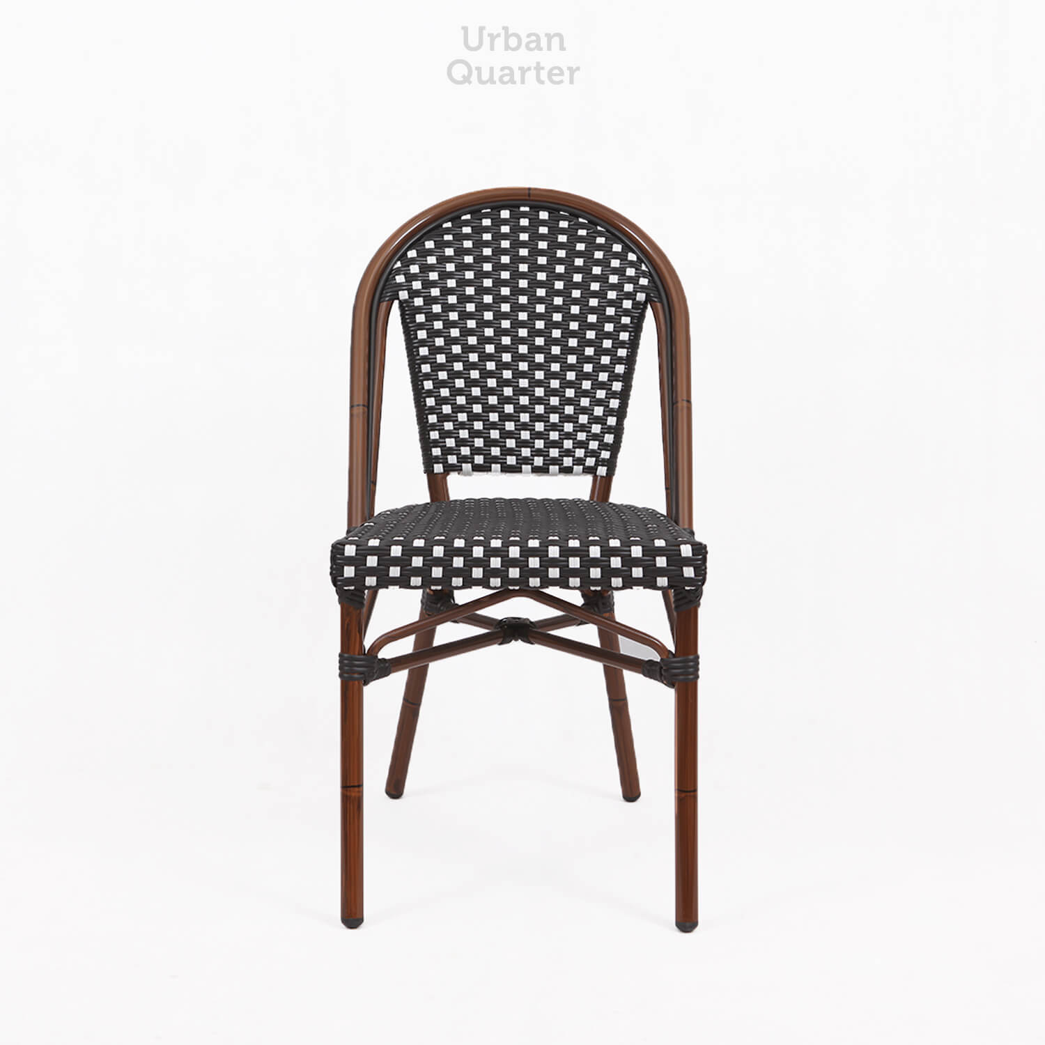 This classic French style bistro chairs invites you to get yourself comfortable outdoor and indoors with its wooden frame and back shaped perfectly for leaning. Also, with its most distinctive hallmark: its navy blue resin wicker weave.