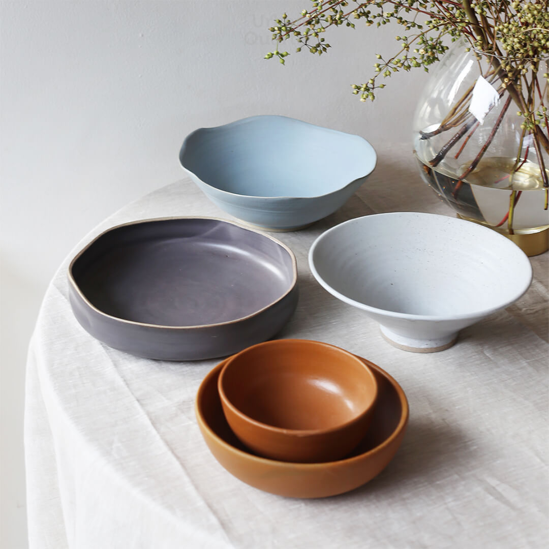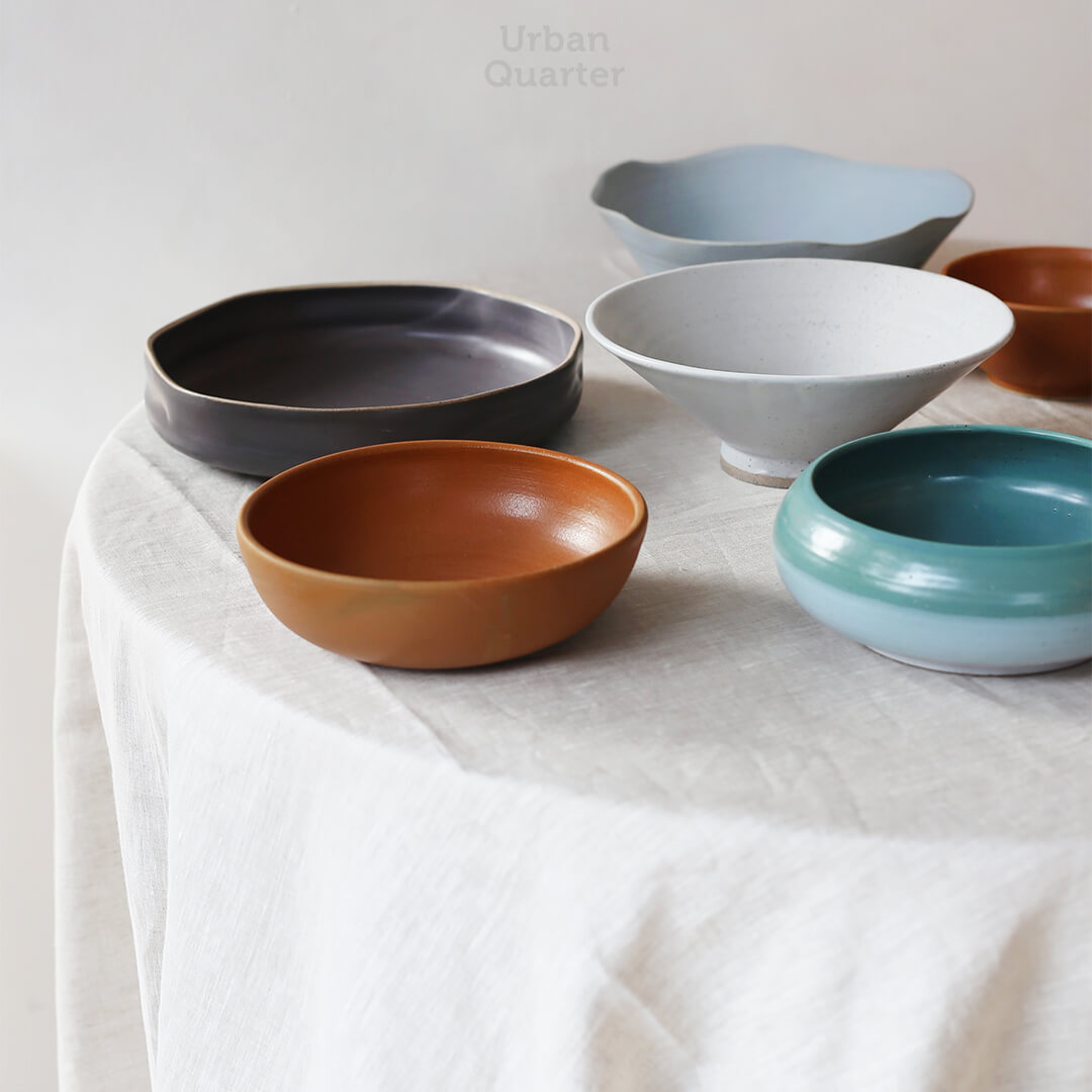 Layer, mix or match the Sajiva ceramic plates to create your curated modern dining set up. For a casual, laidback dining experience, each piece of our ceramic dinner plates and bowls is distinctive and one-of-a-kind as they are handmade with naturl glazes to exude each piece.