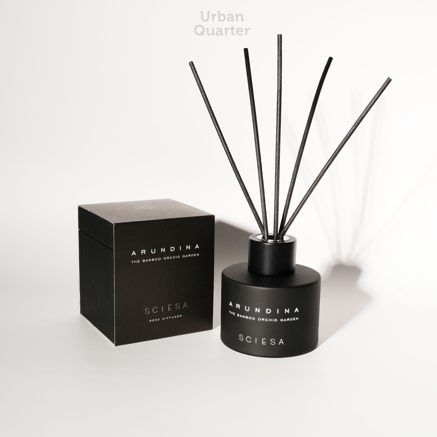 Enjoy the soothing scent after a busy day with the Sciesa Arundina mini diffuser. On a peaceful autumn morning, a blooming floral composition was discovered. Let the energy and airiness flourish within every step. Feel the cool bracing mist of Hedione, layered with vibrant Mandarin, Herbal and captivating Rhubarb.