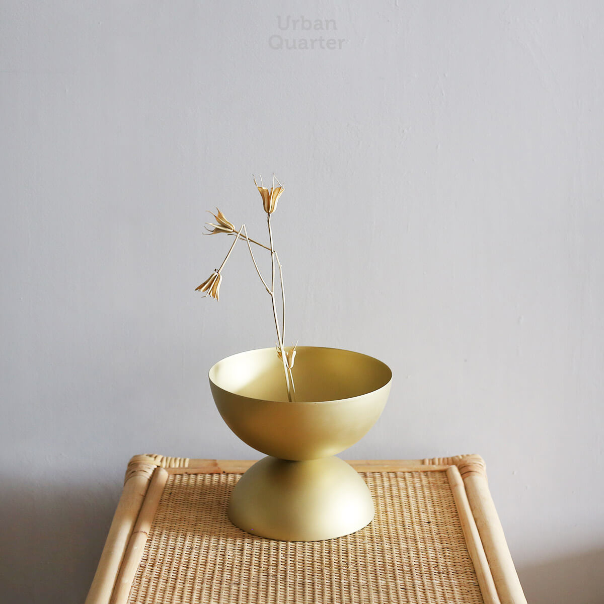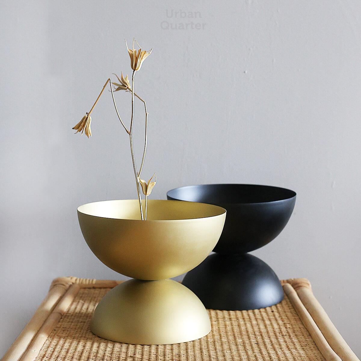 Minimalistic centerpiece for your home! The Tumpuk by Tyaga is an exceptional piece that can be used as a vase or simply as a decorative accent on your tabletop or shelf. Available in gold and black, Tumpuk can also be used to hold your dry or faux plants. What’s great about this piece is that you can reverse it!