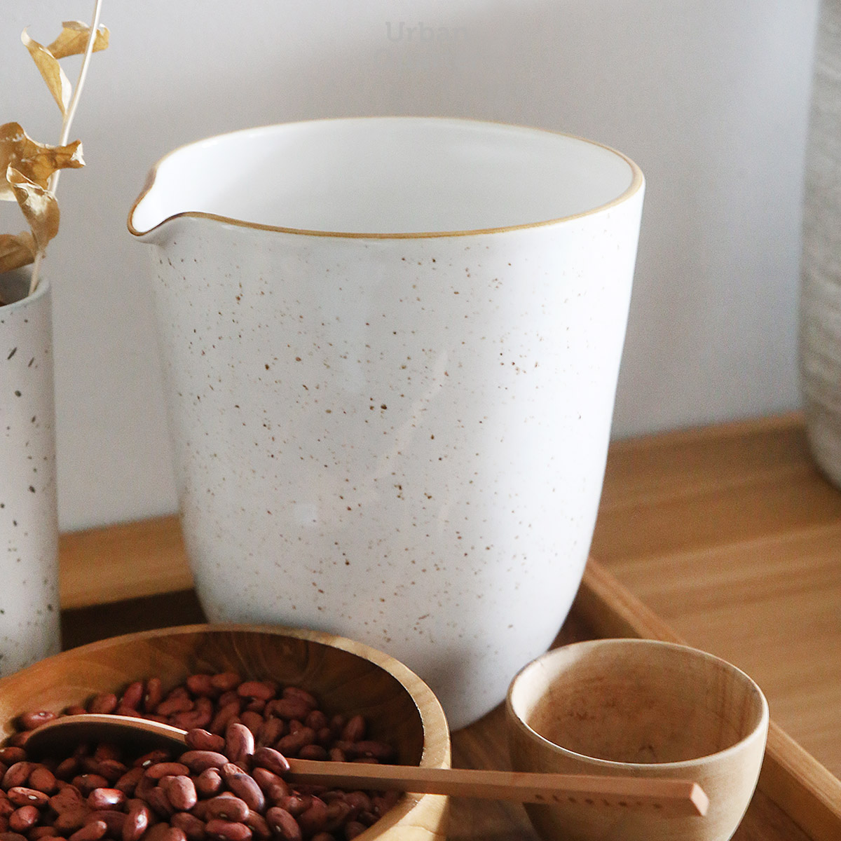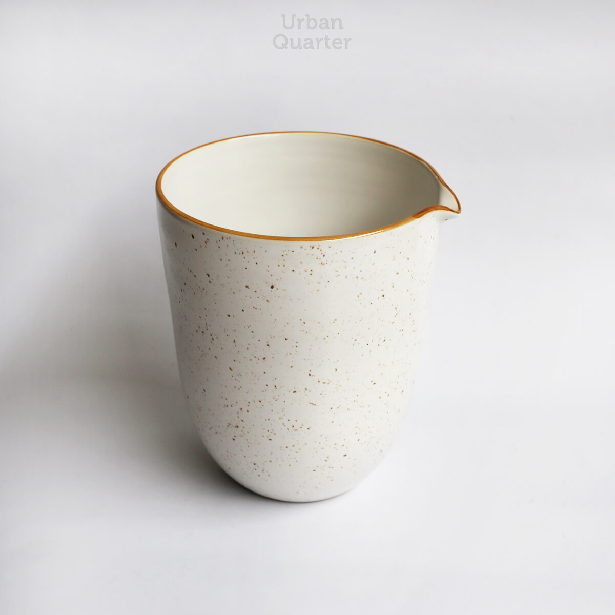 3. Handmade ceramic in white speckled shiny finish.